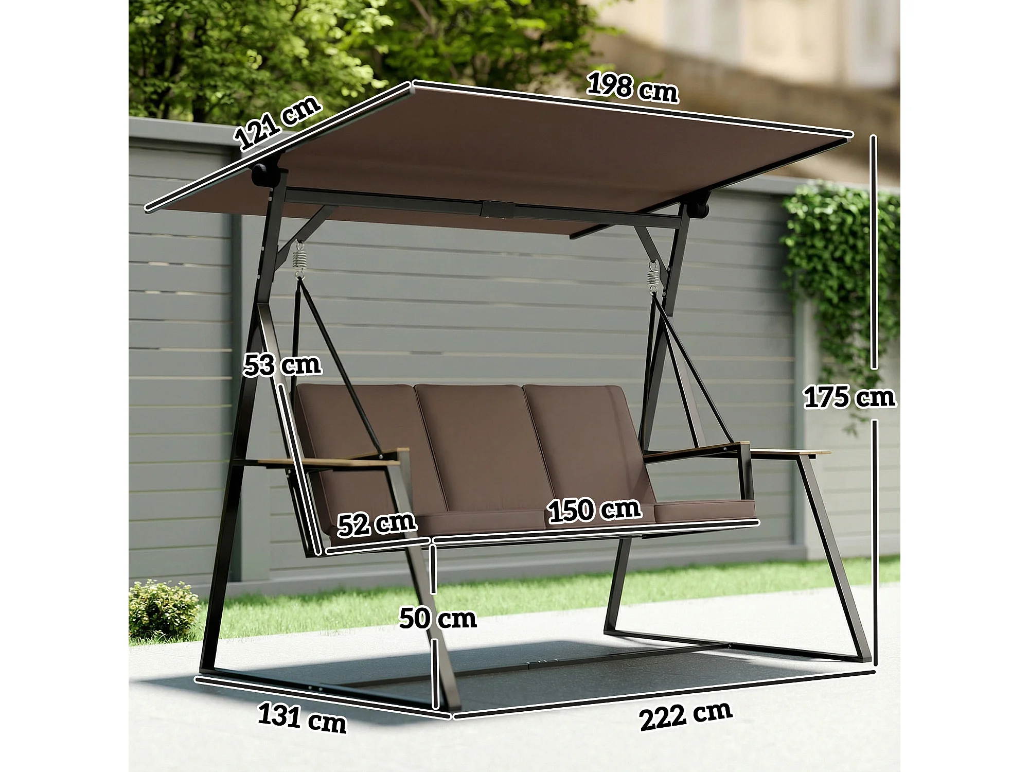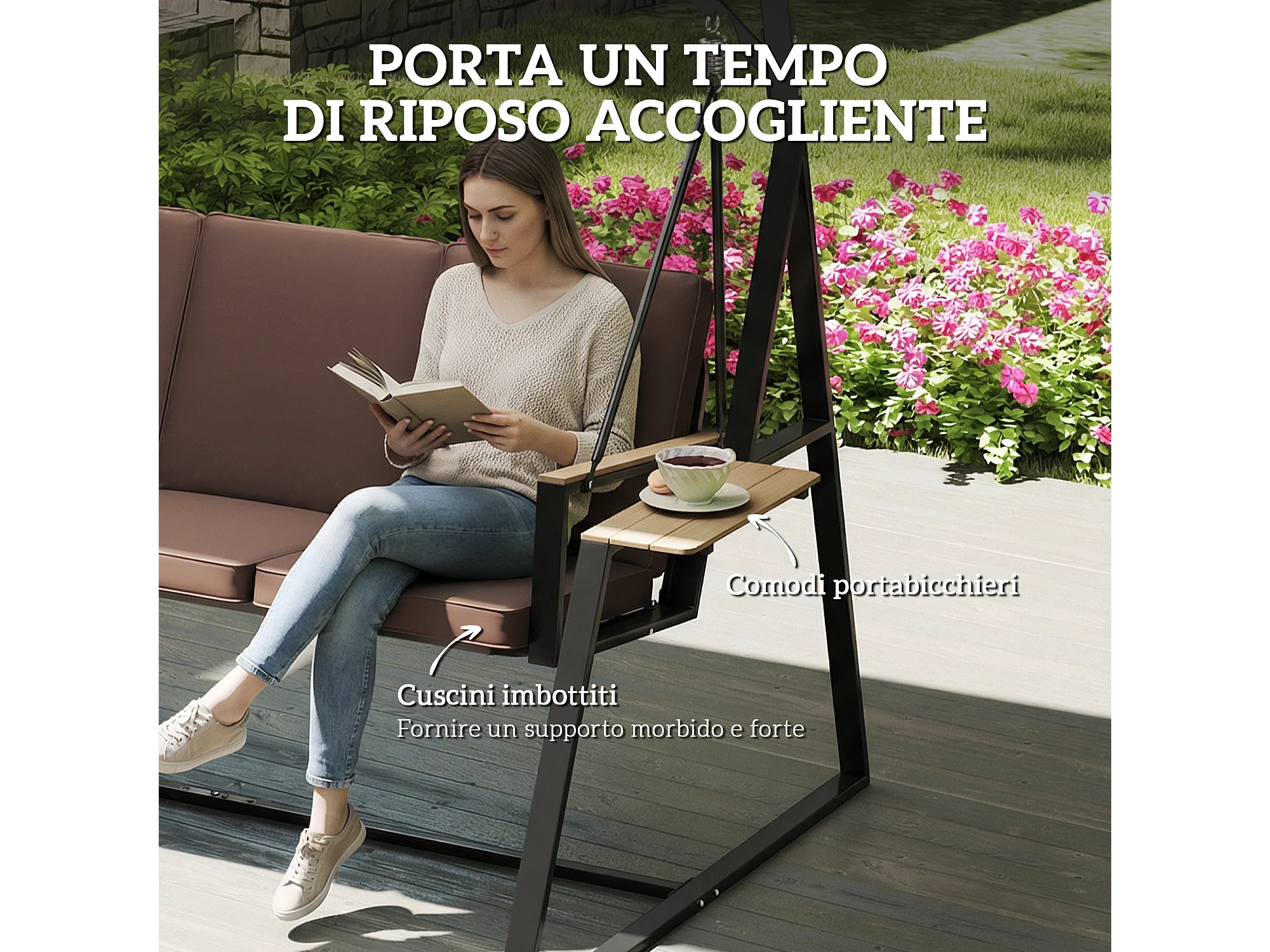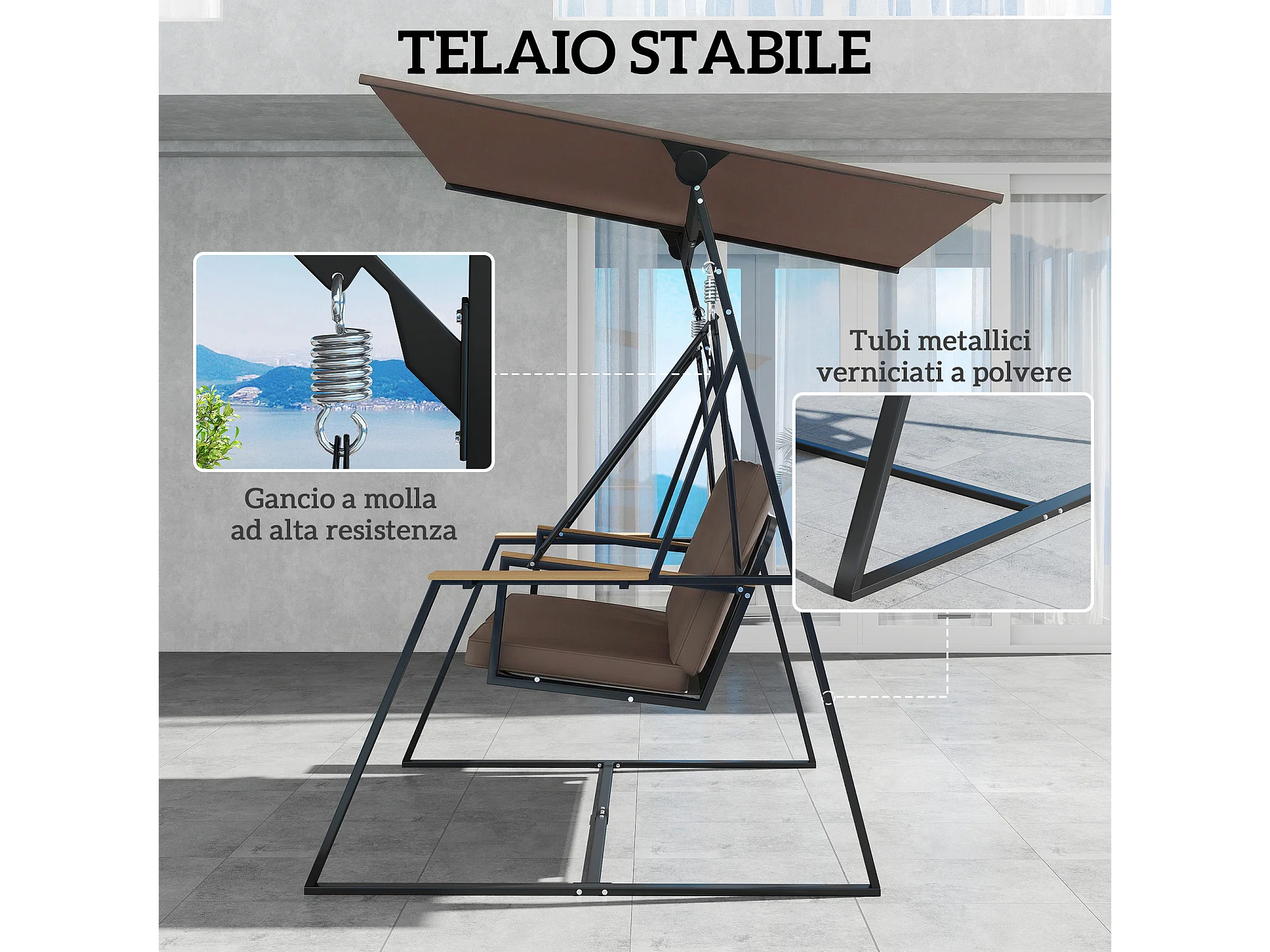 Dondolo da giardino 3 posti struttura in acciaio marrone