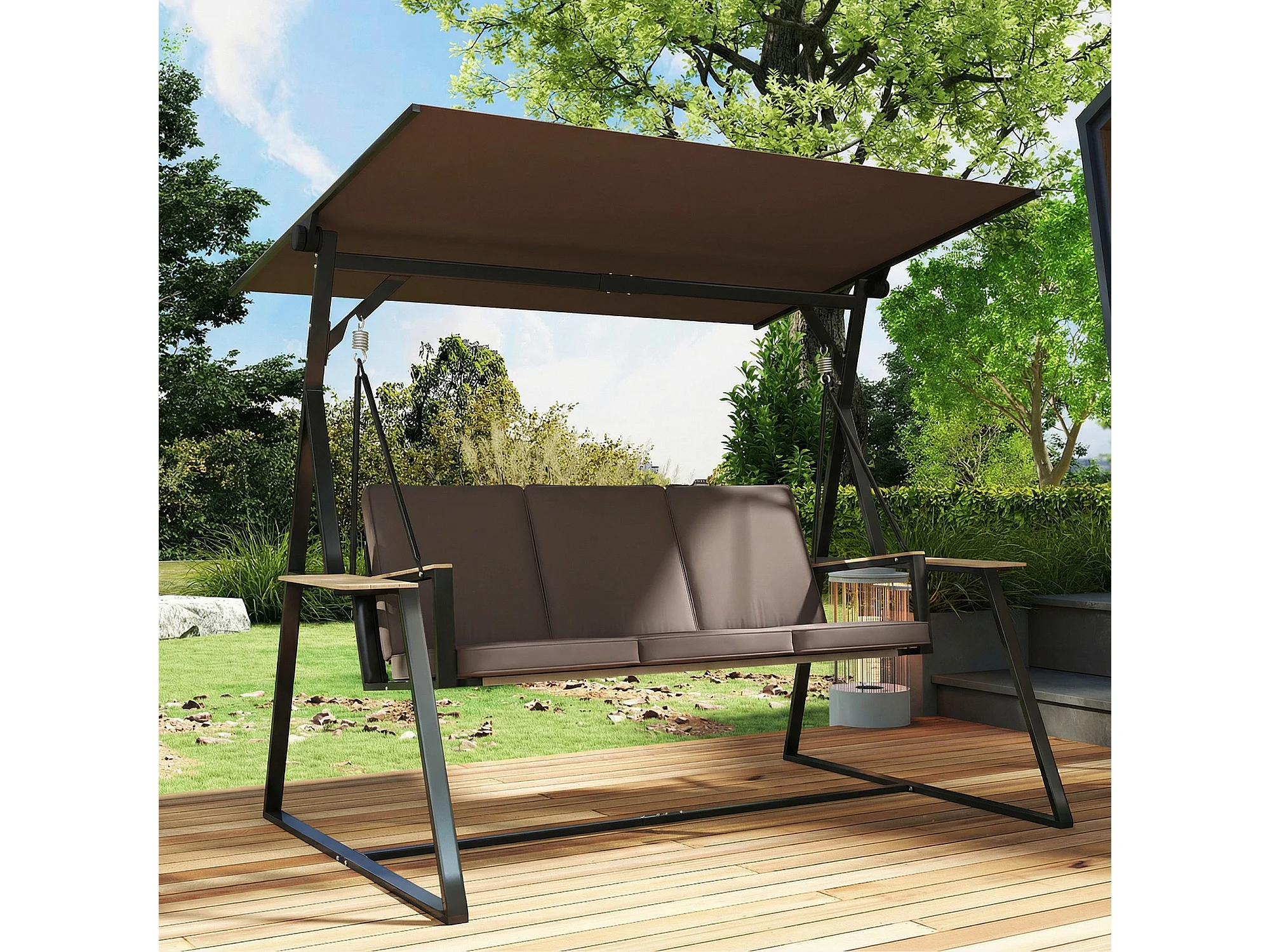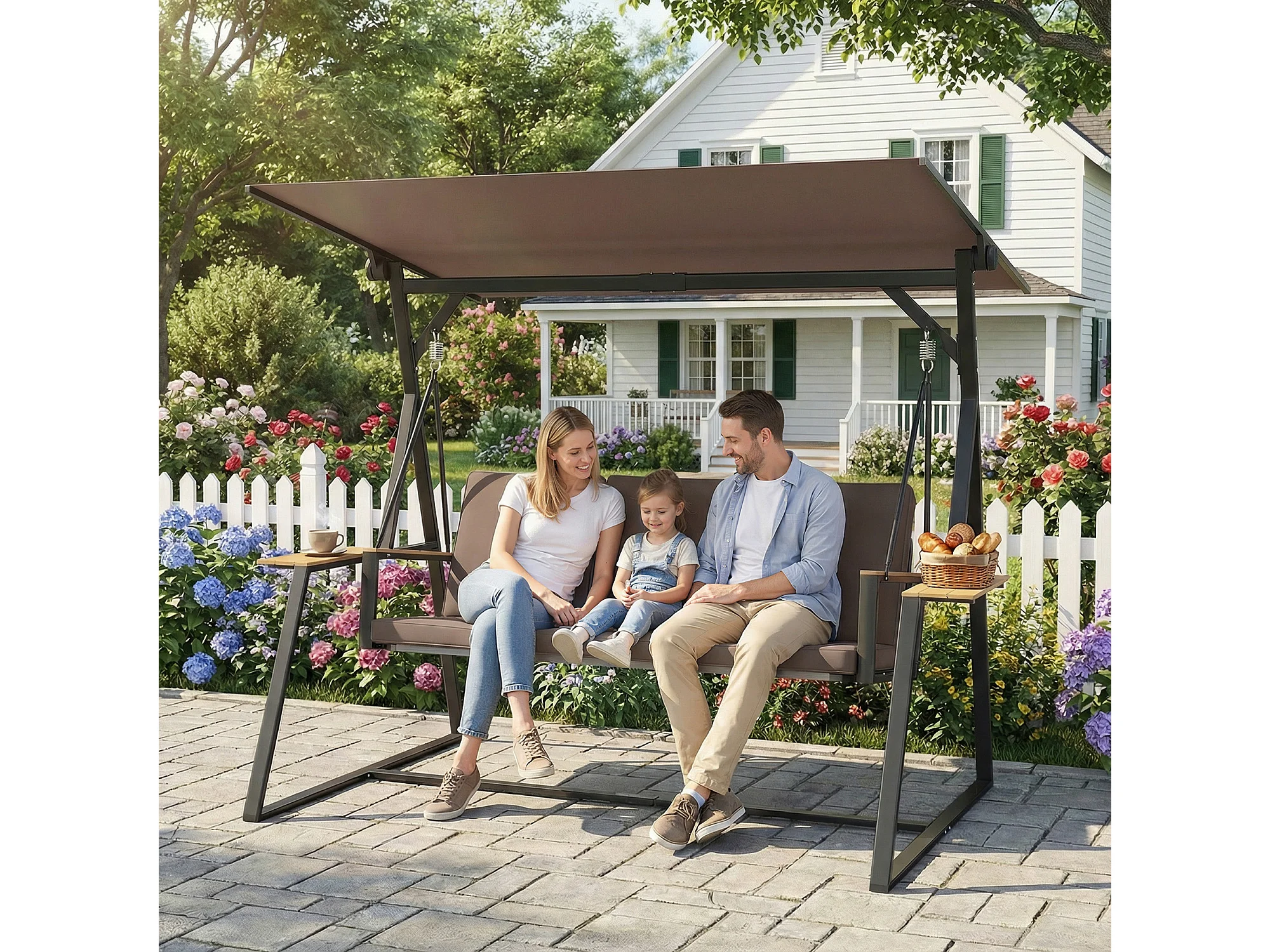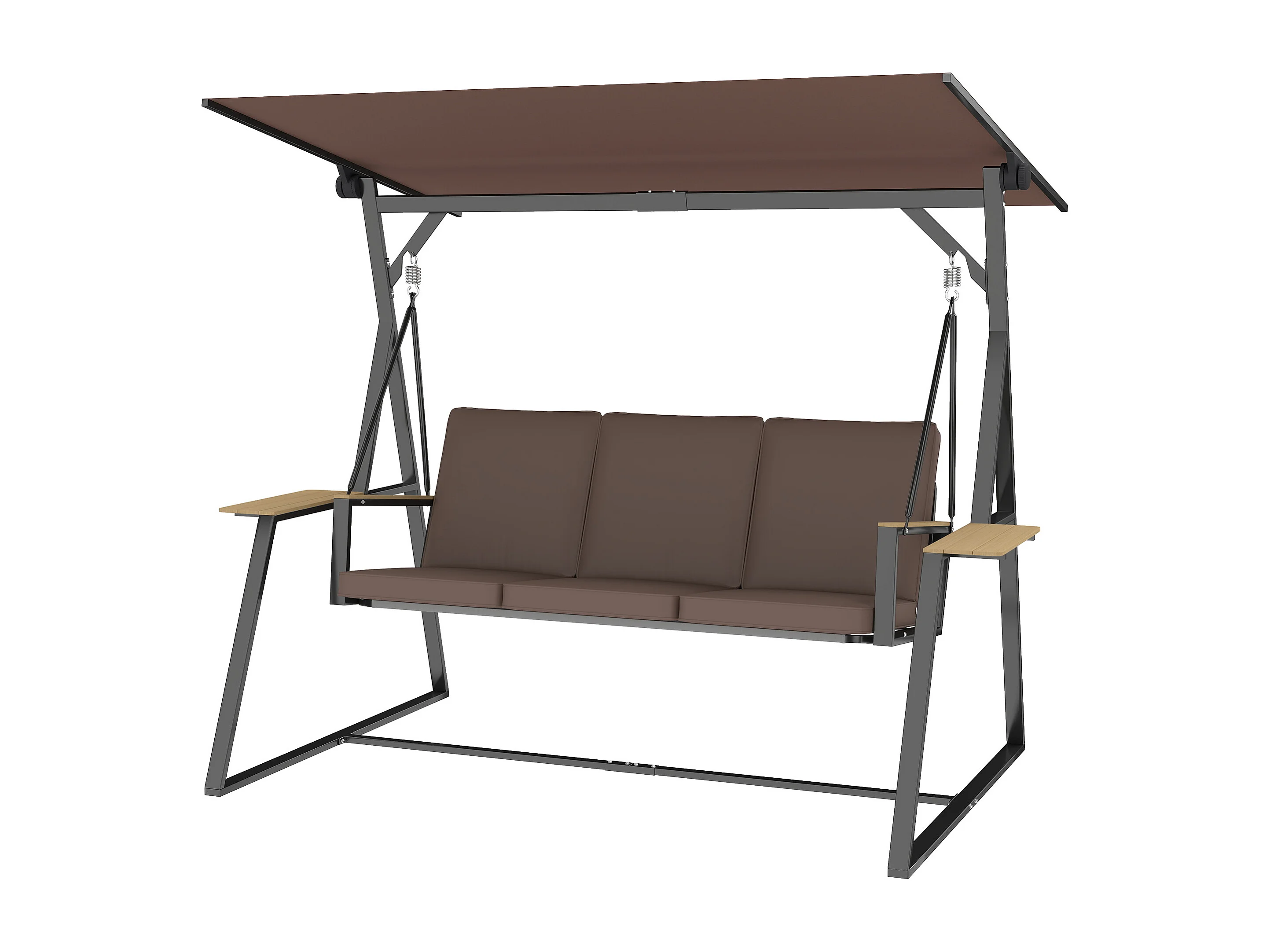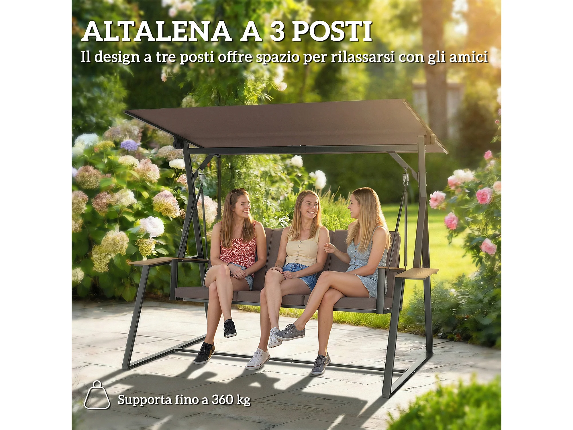 Dondolo da giardino 3 posti struttura in acciaio marrone