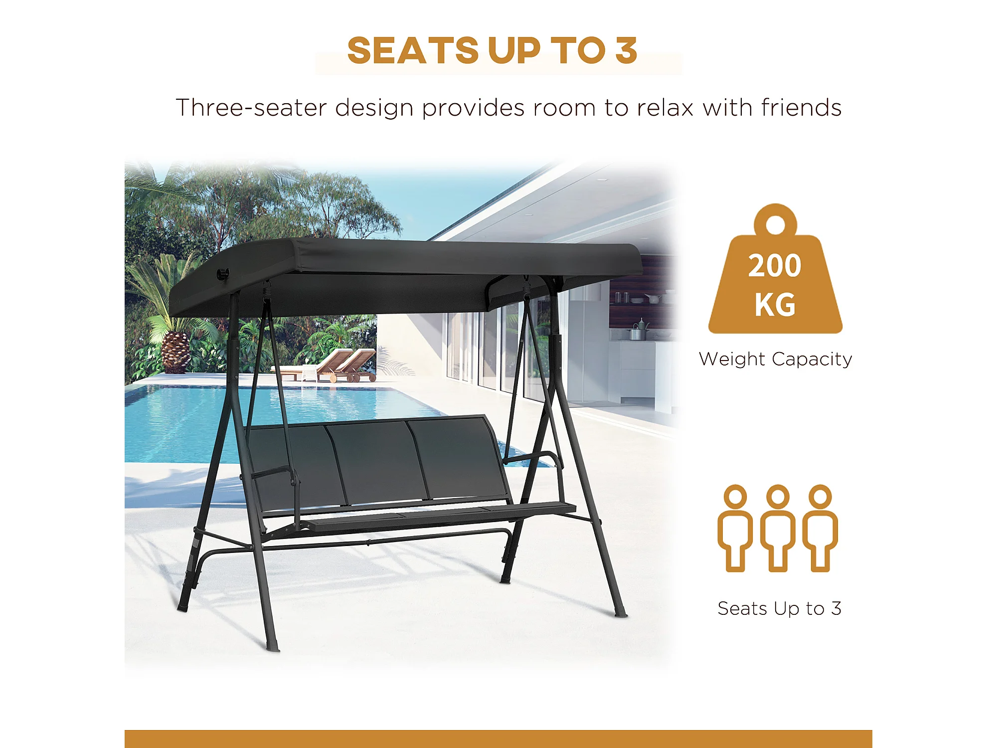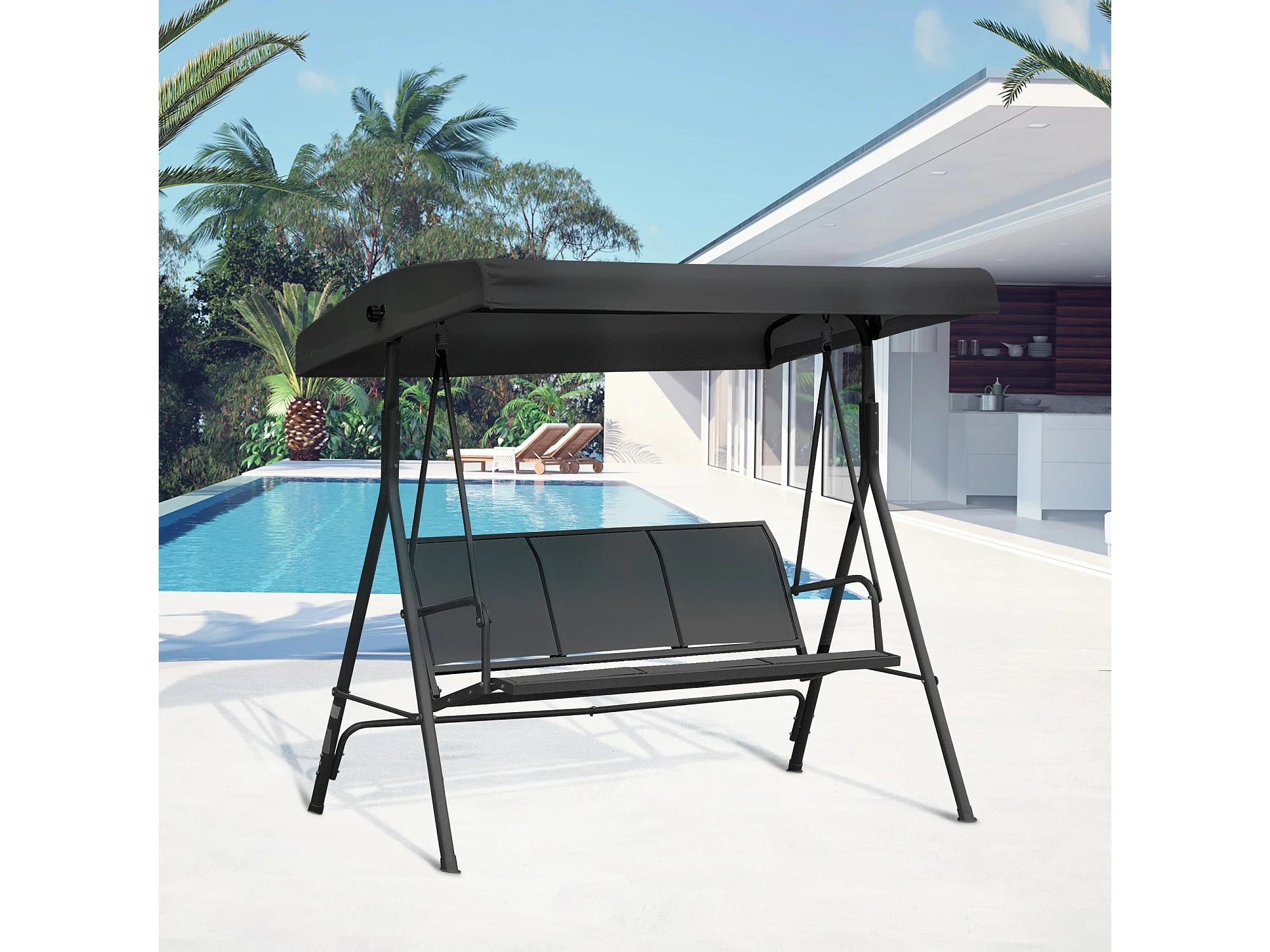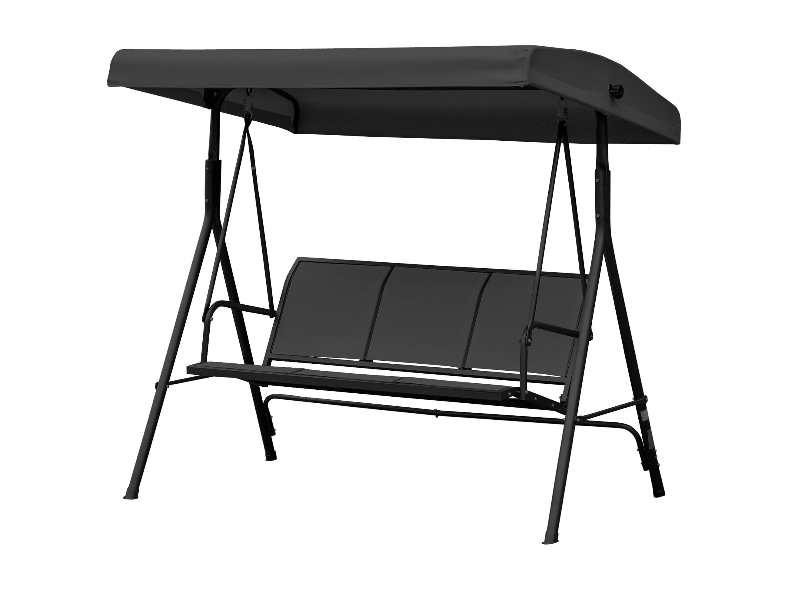 Dondolo da giardino da 3 posti con tettuccio parasole nero