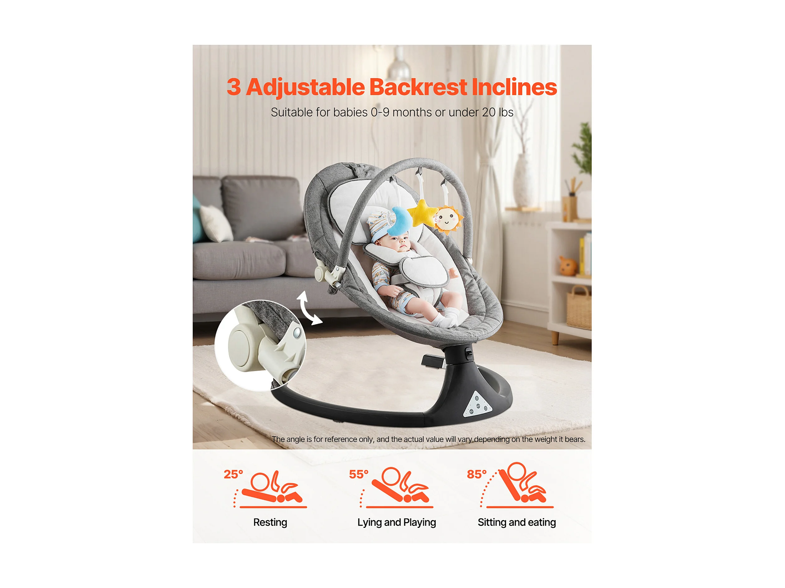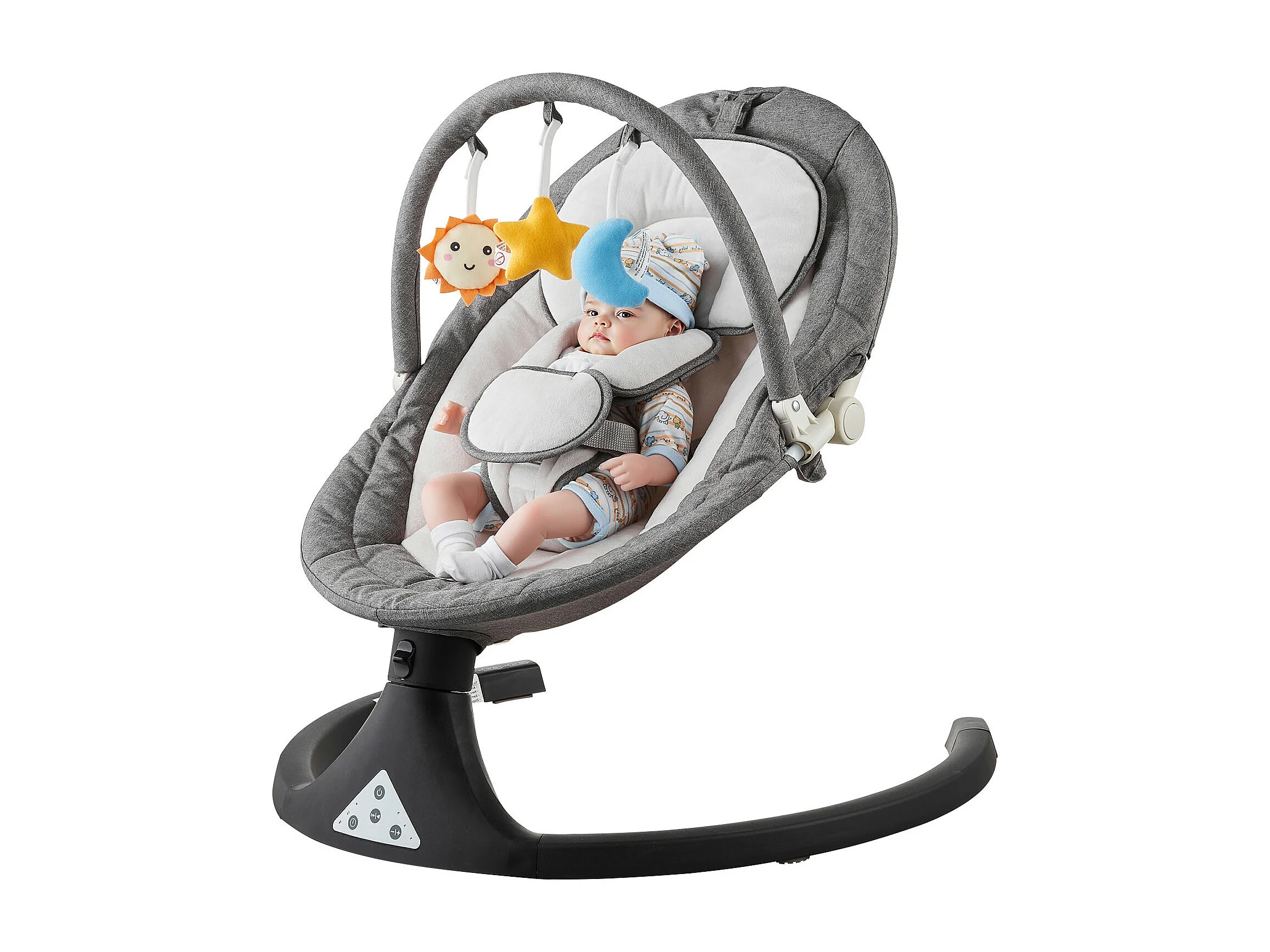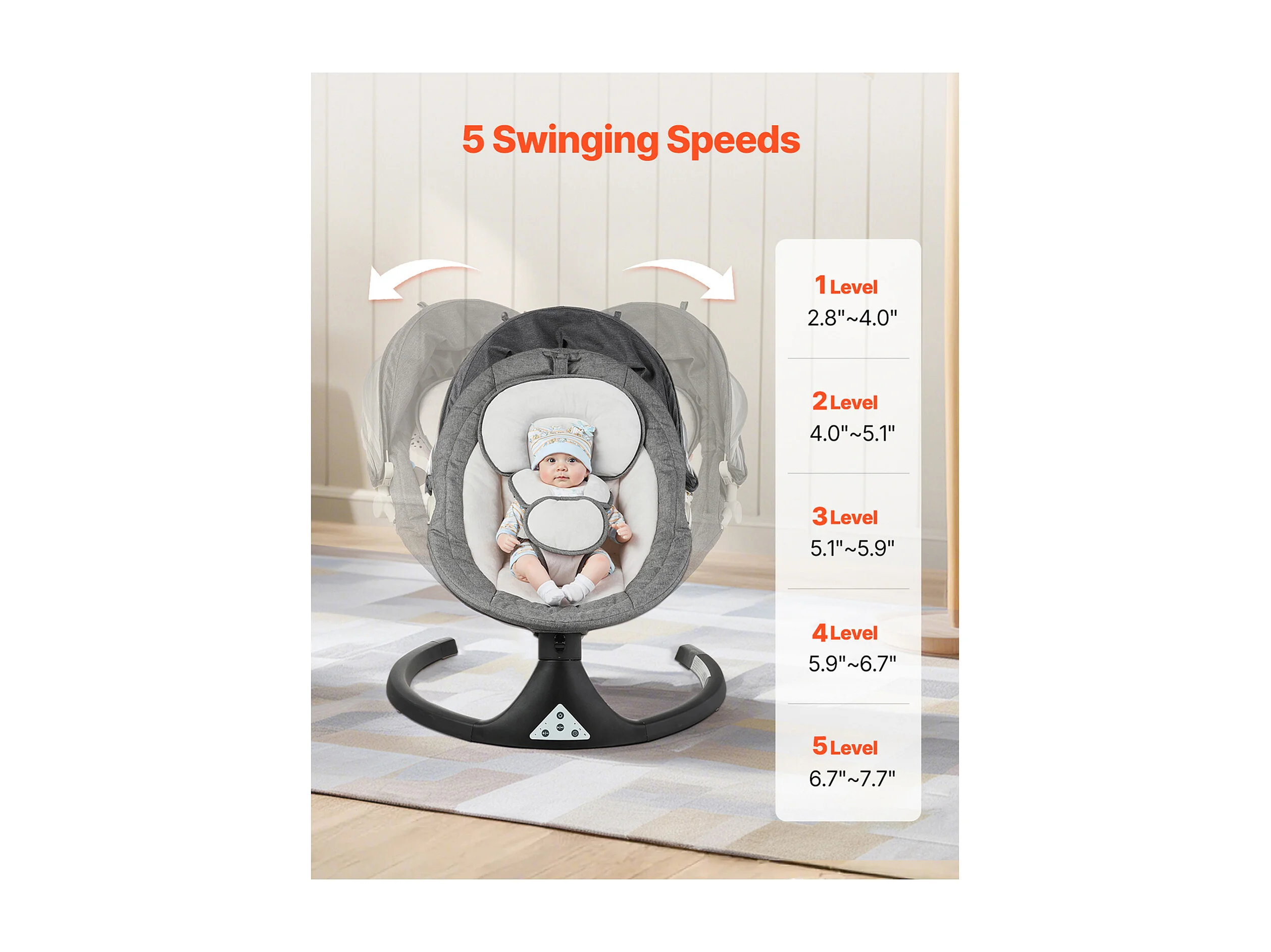 Dondolo Elettrico per Neonati, SucceBuy Altalena per Neonati con 5 Velocità, 3 Posizioni di Seduta e Barra Giochi con Telecomando