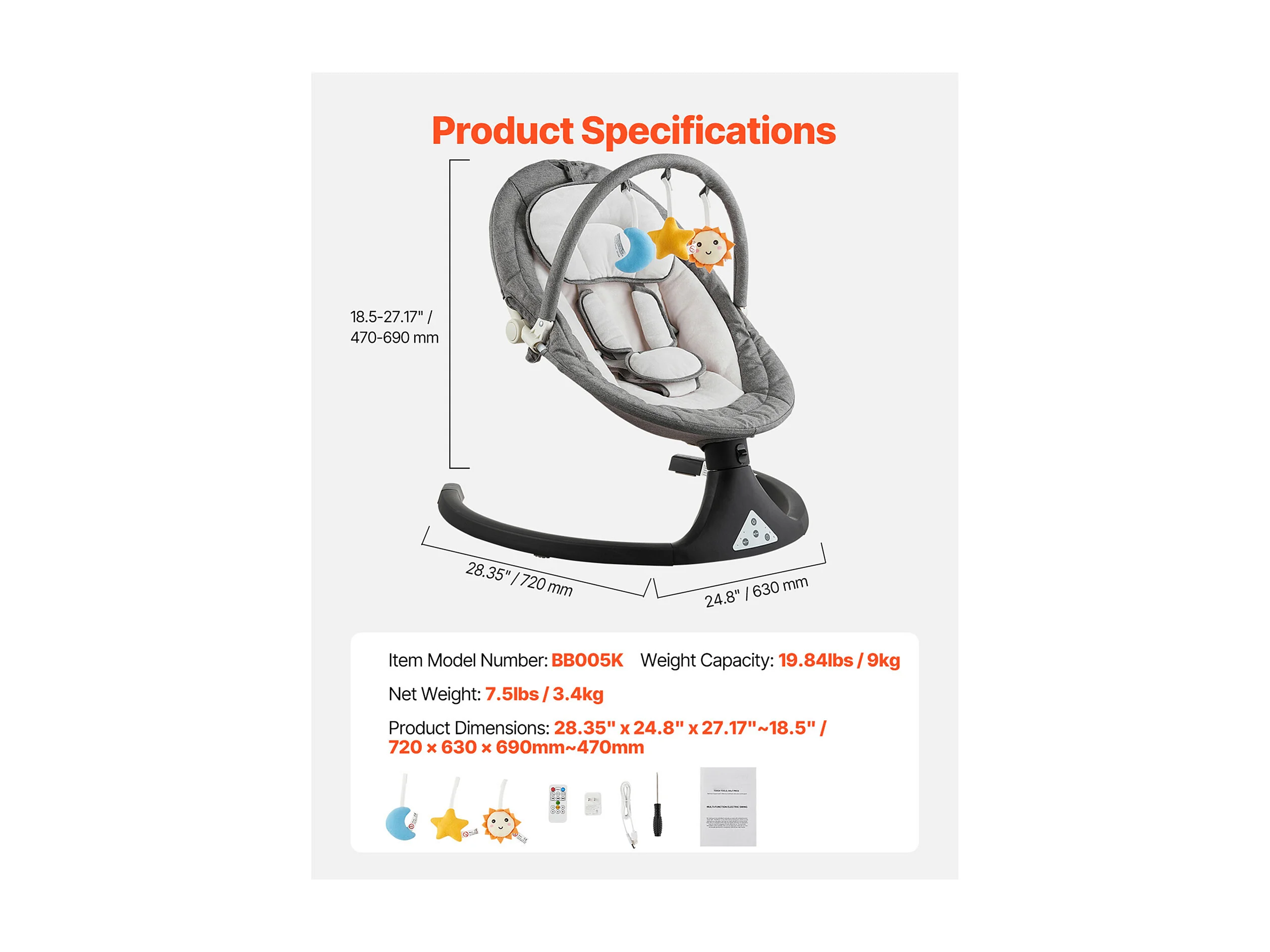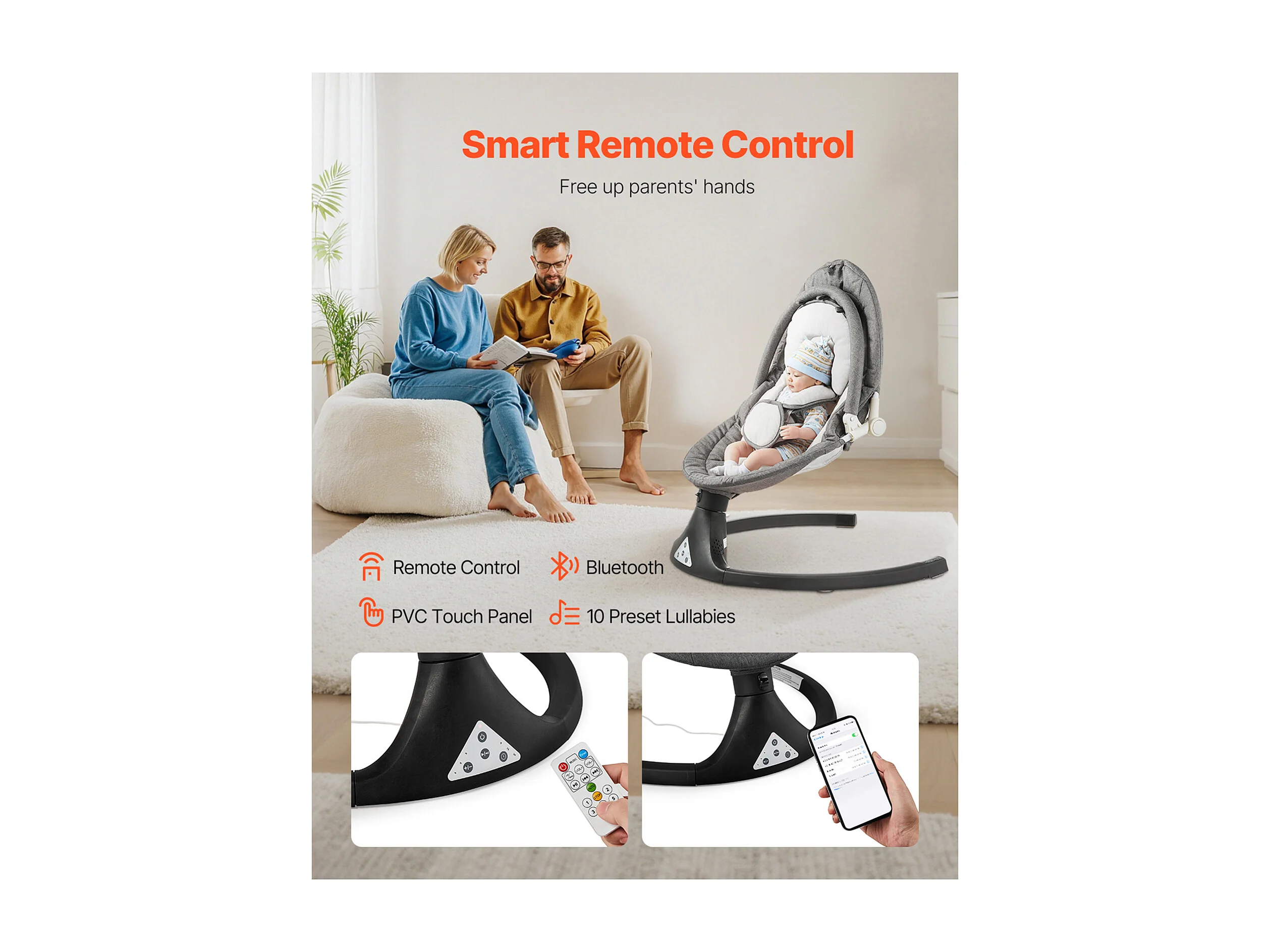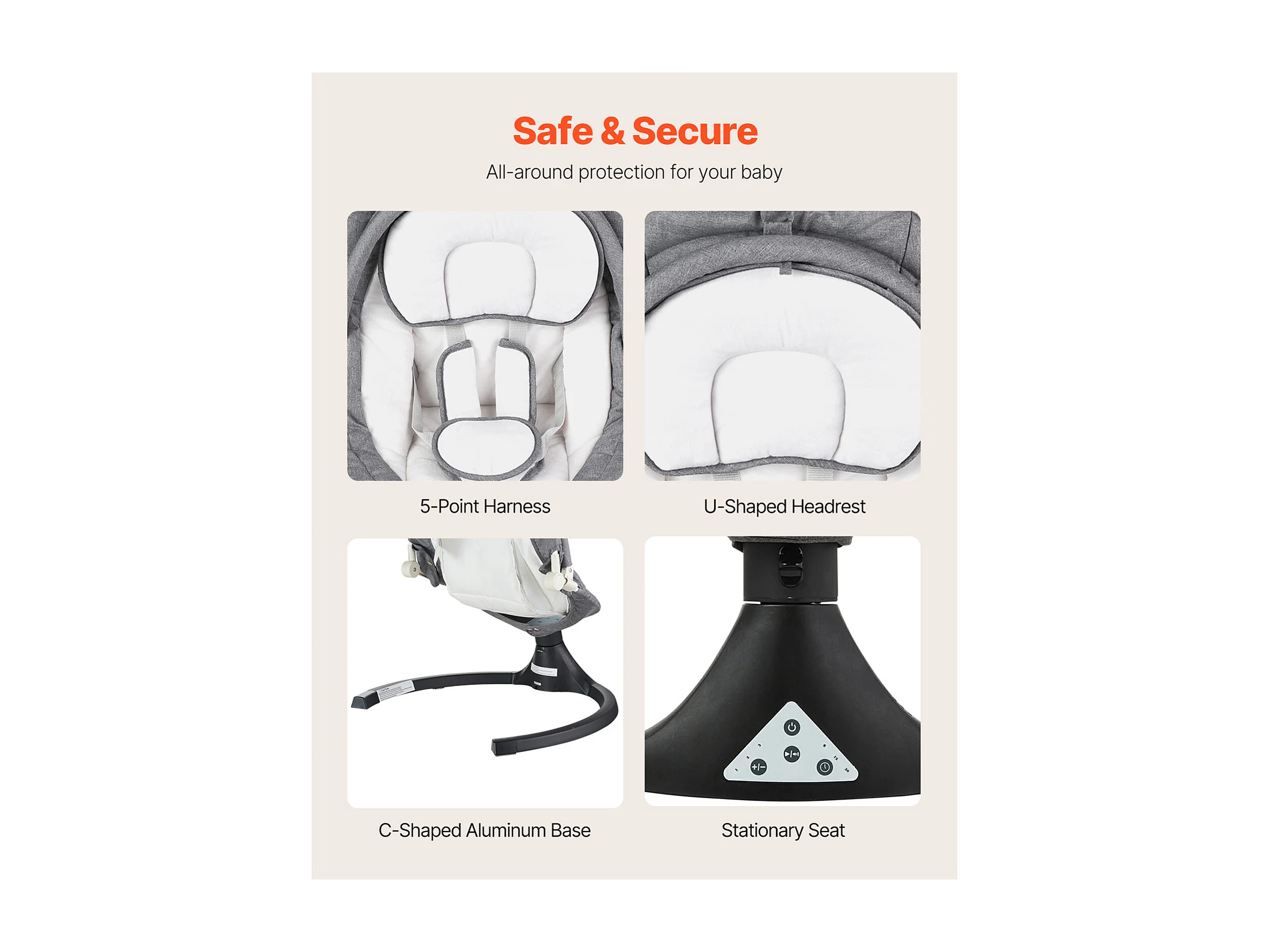 Dondolo Elettrico per Neonati, SucceBuy Altalena per Neonati con 5 Velocità, 3 Posizioni di Seduta e Barra Giochi con Telecomando