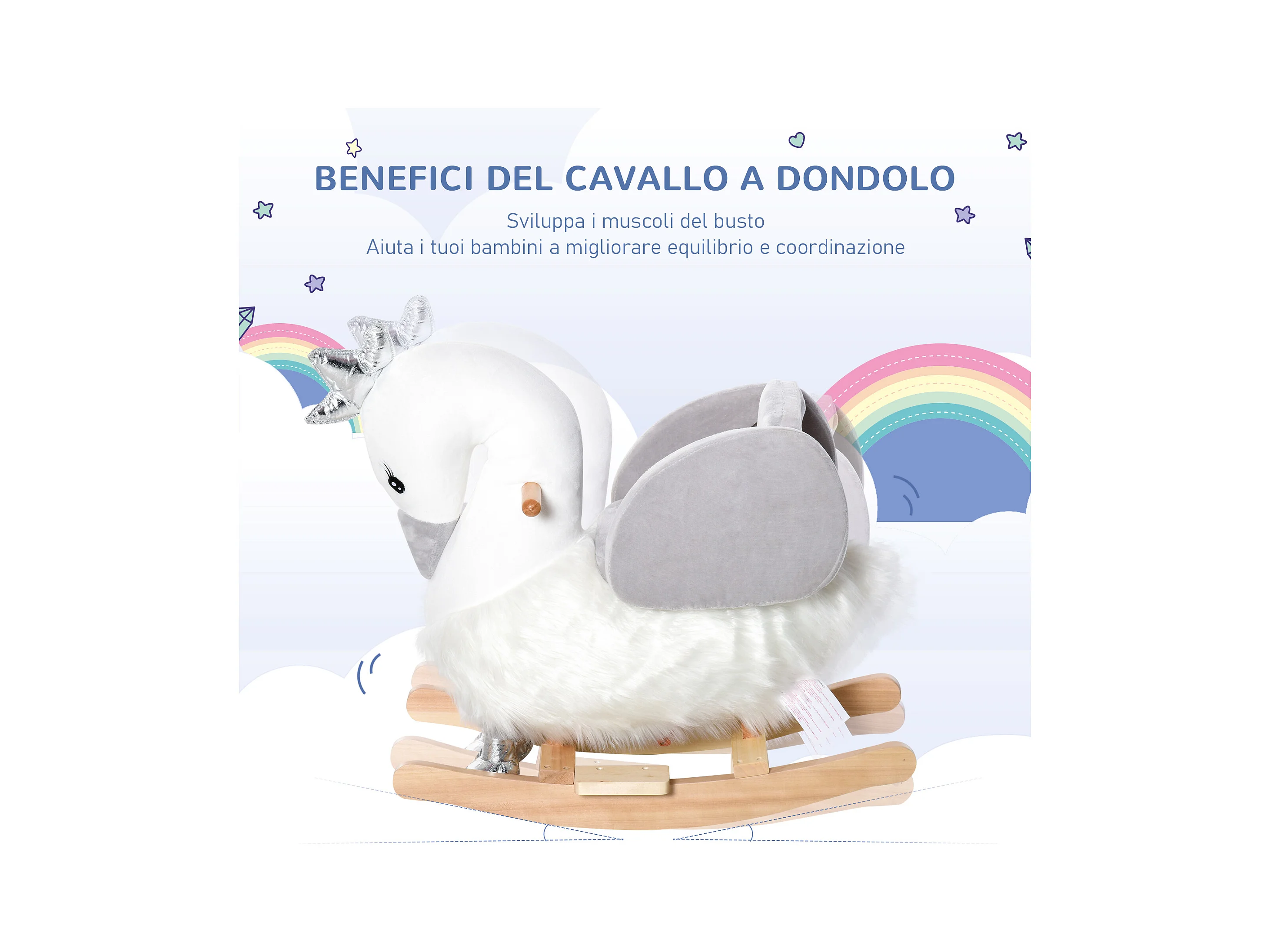 Dondolo giocattolo cigno per bambini legno e peluche bianco e grigio