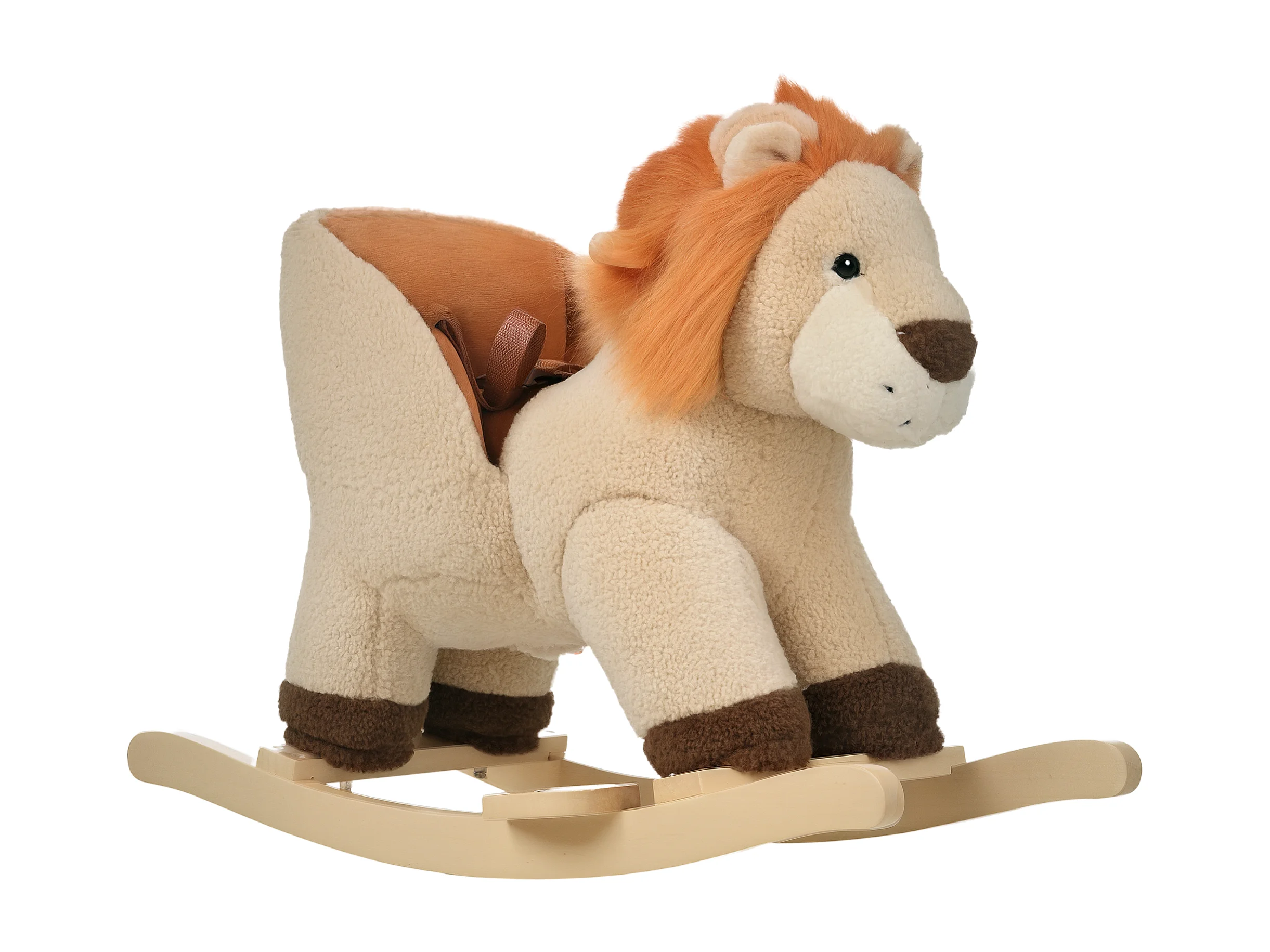 Dondolo giocattolo leone per bambini ruggisce legno e peluche marrone