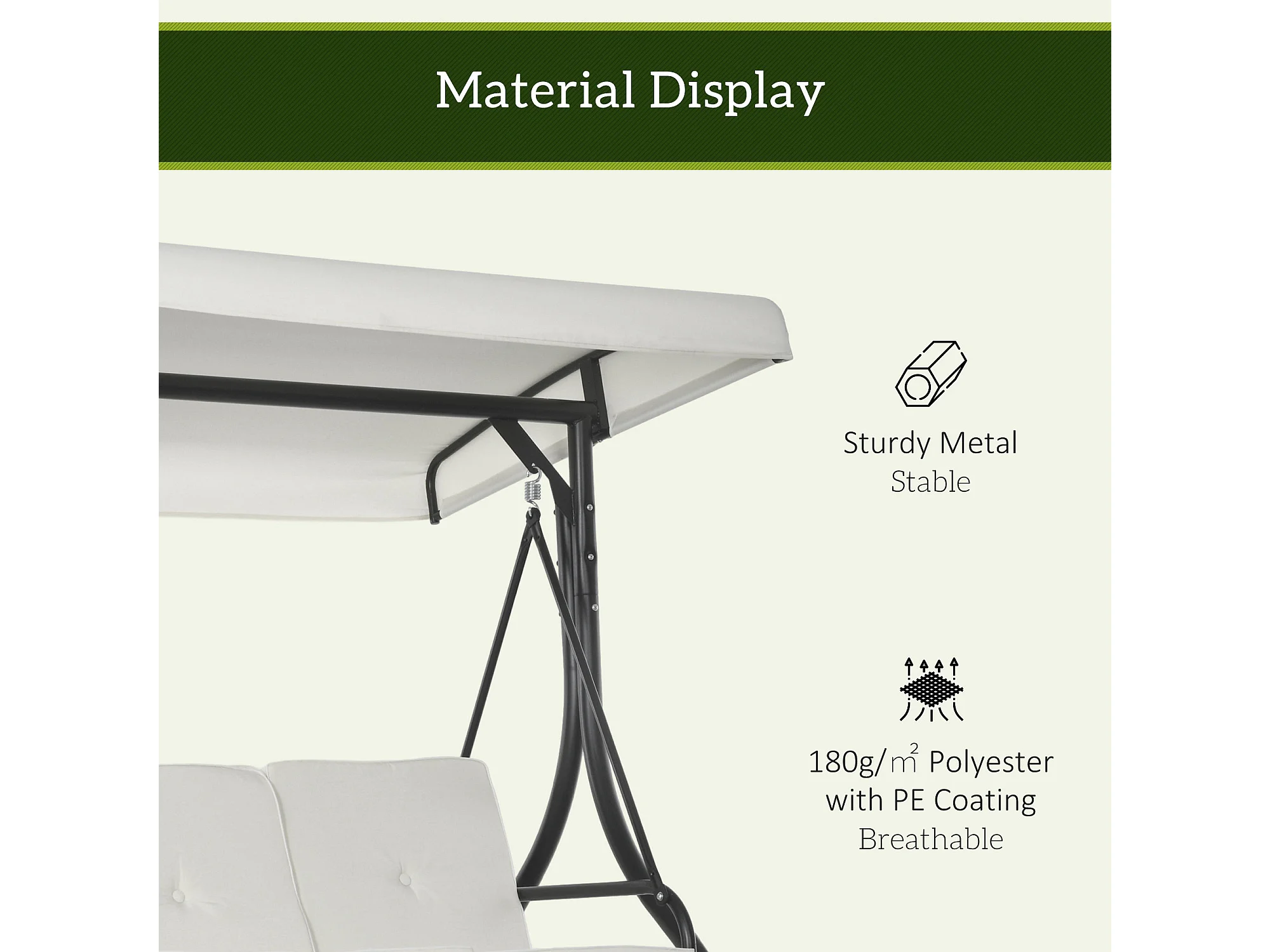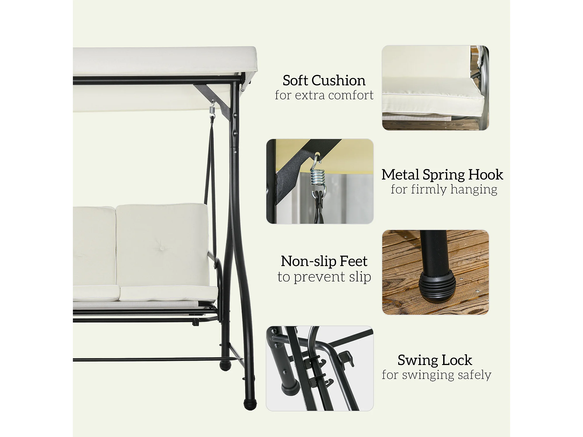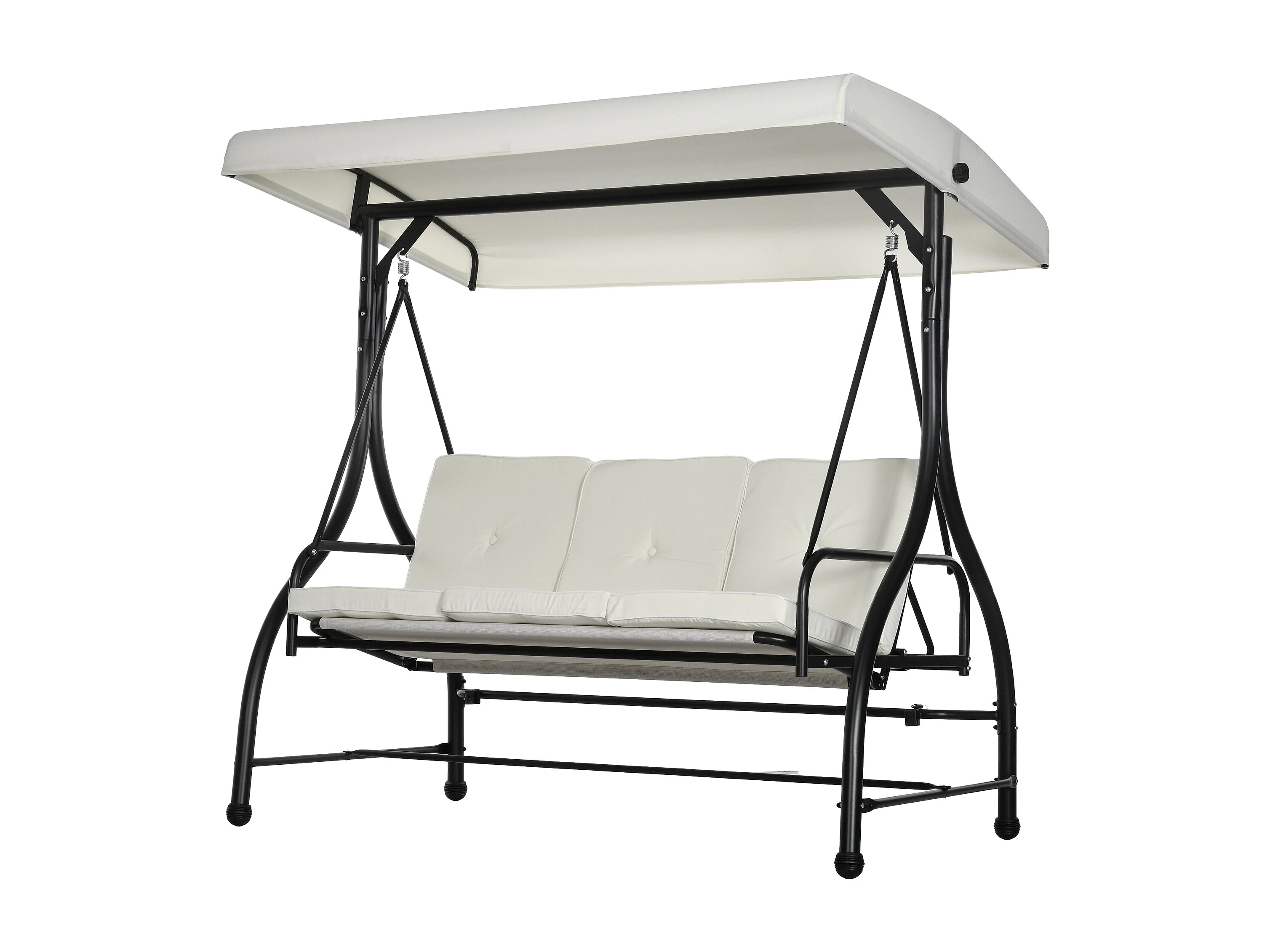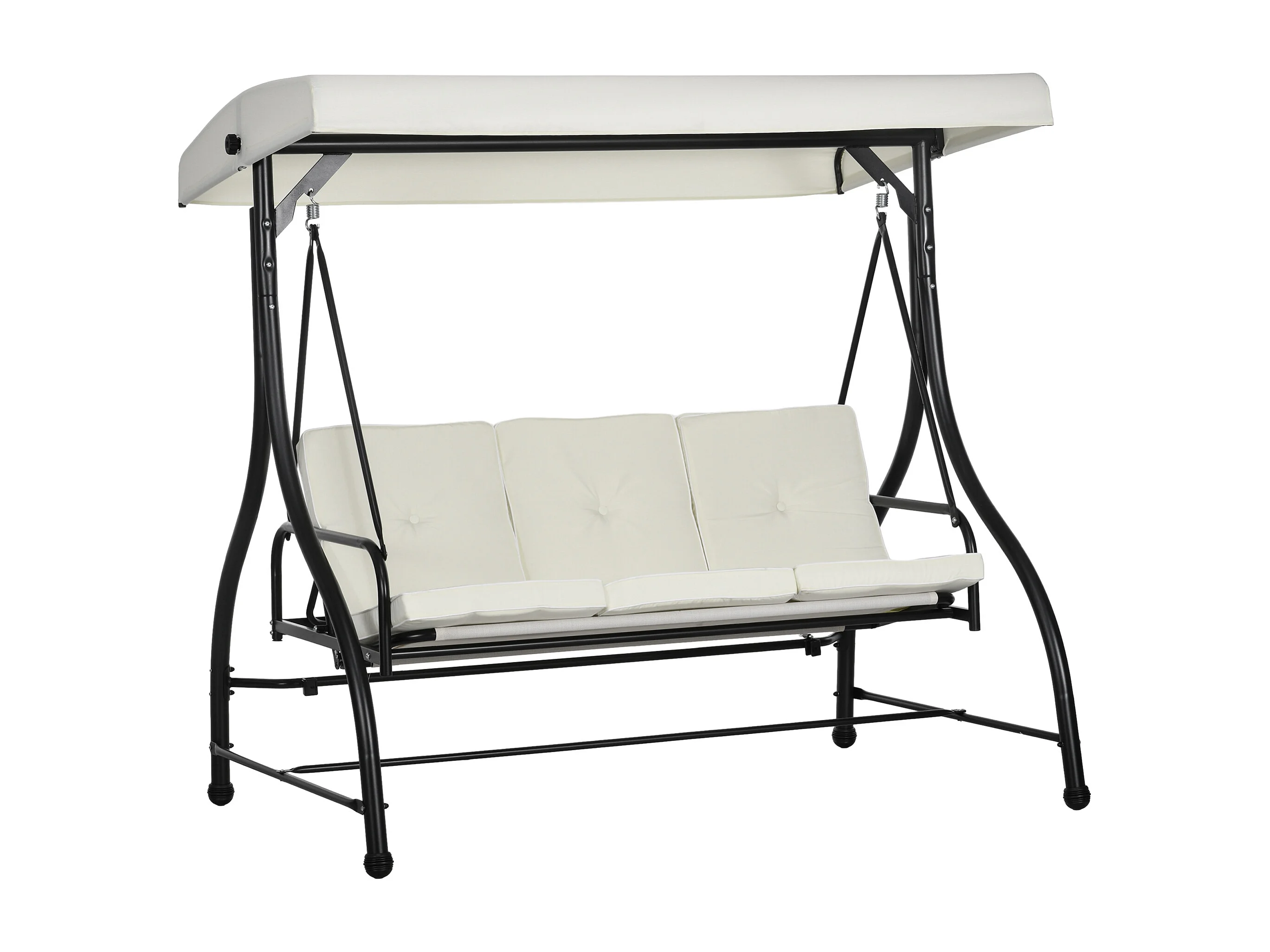 Dondolo letto da giardino 3 posti con tettuccio regolabile crema nero