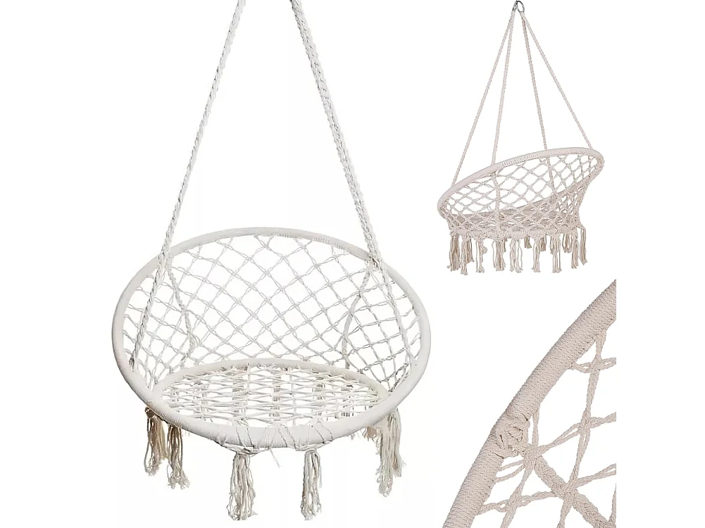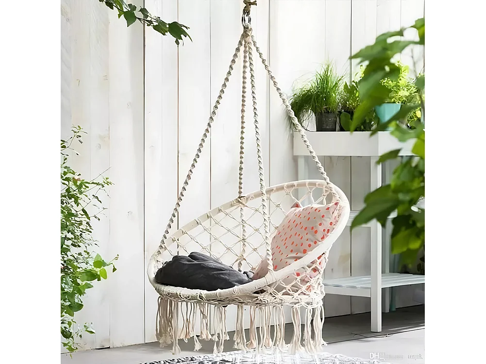 Dondolo Poltrona Amaca Sospesa Intrecciata Beige Sedia Altalena Interni Esterni