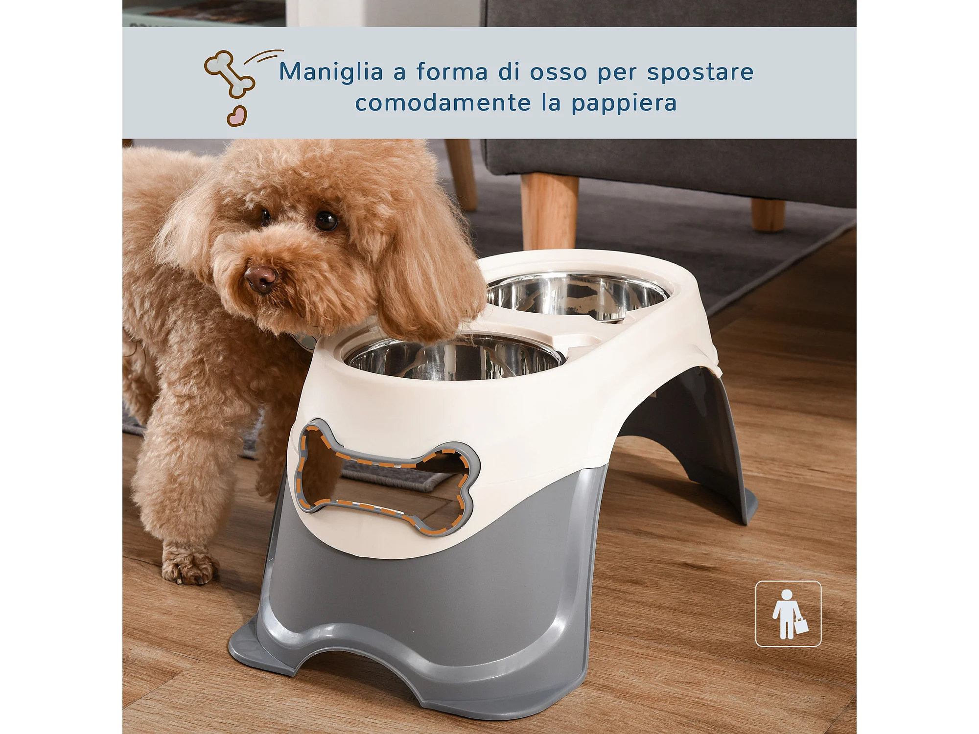 Doppia ciotola per cani rialzata acciaio e pp 47x25x20cm