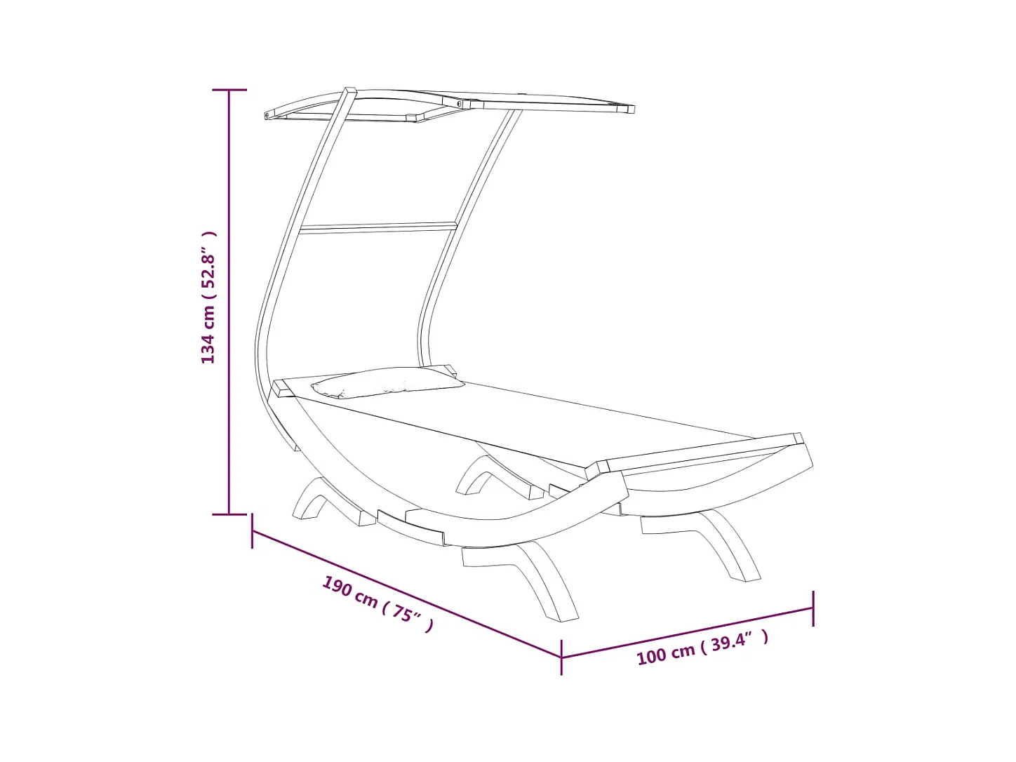 Dormeuse con baldacchino 100x190x134 cm Legno massello curvato Crema