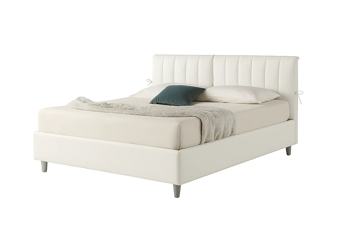 Dualia, Letto Matrimoniale Rivestimento Vegan Leather Easy Clean Bianco (175cm X 220cm X 120cm)| Duzzle