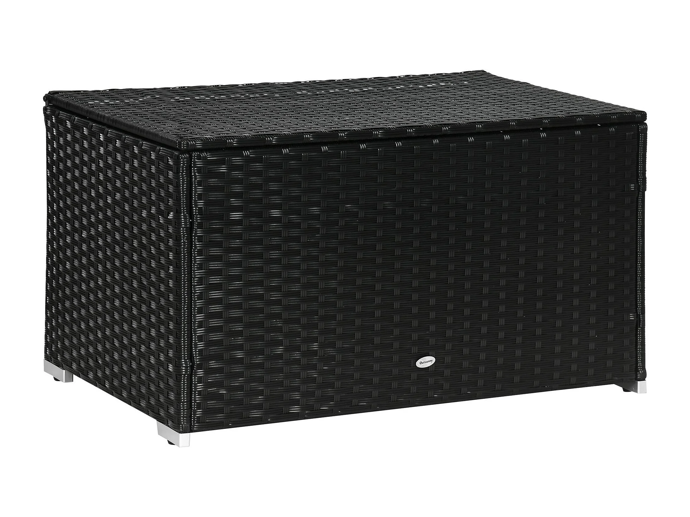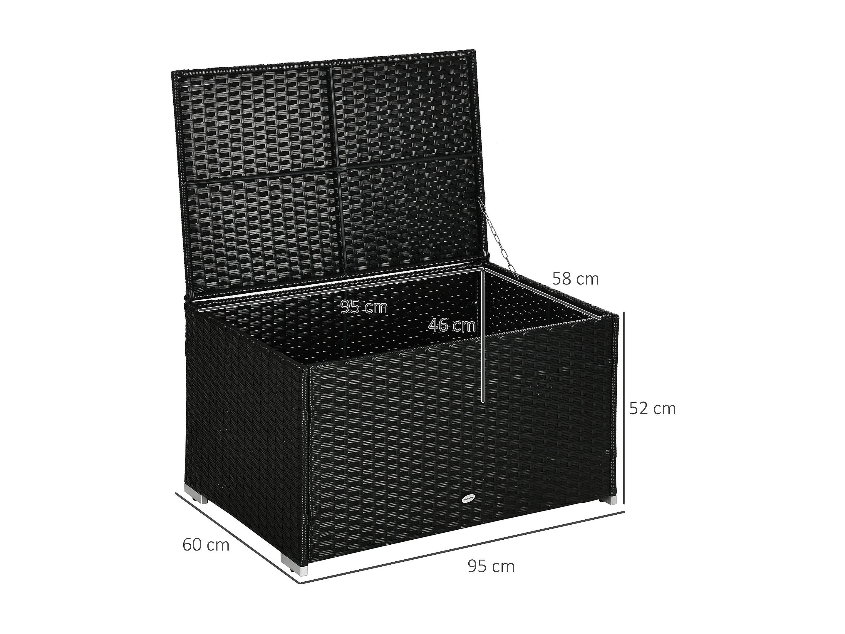 EasyComfort Baule da Giardino in Rattan e Acciaio con Coperchio, 95x60x53cm, Nero