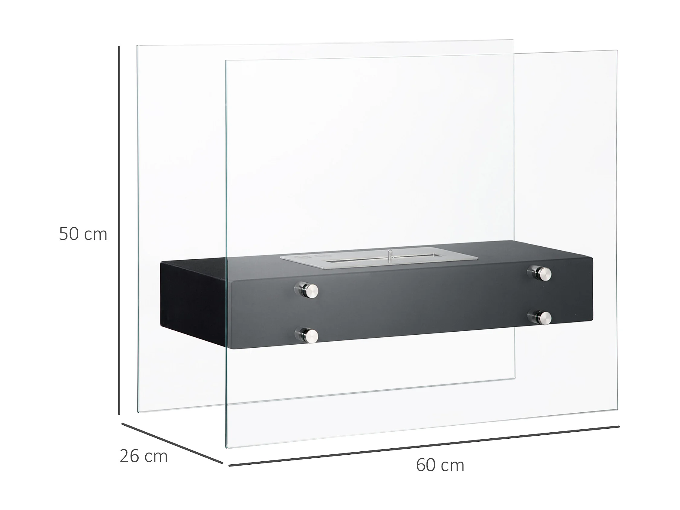 EasyComfort Camino a Bioetanolo da Tavolo con Bruciatore da 1.15L e Pannello in Vetro, 33x16x18cm, Nero