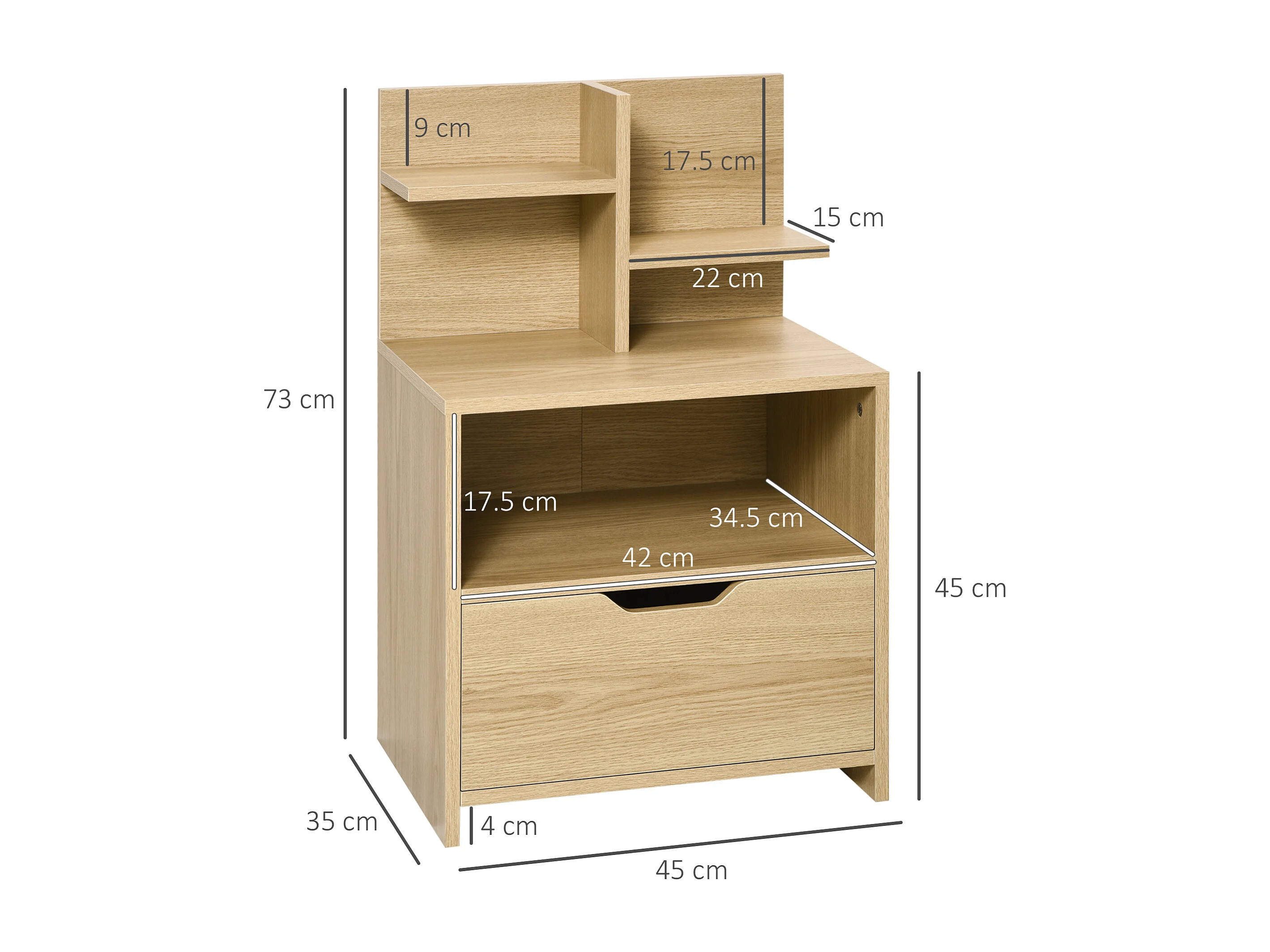 EasyComfort Comodino con 2 Ripiani Aperti e Cassetto in Truciolato per Camera da Letto e Salotto, 45x35x73 cm
