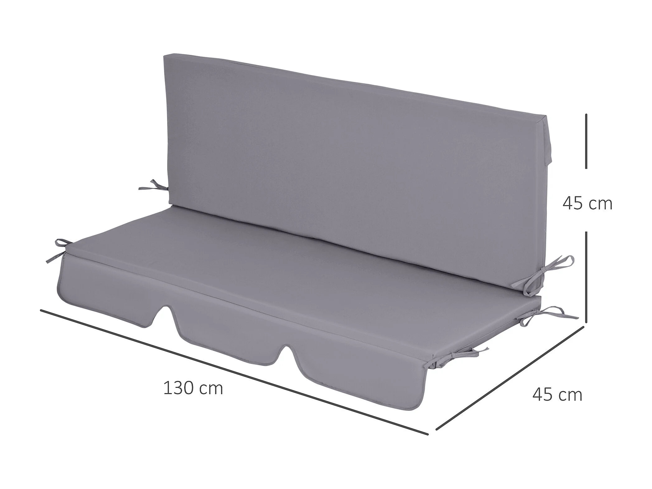 EasyComfort Cuscini da Esterno per Dondolo da Giardino 3 Posti con Lacci, 2 Pezzi da 130x45x5 cm, Grigio