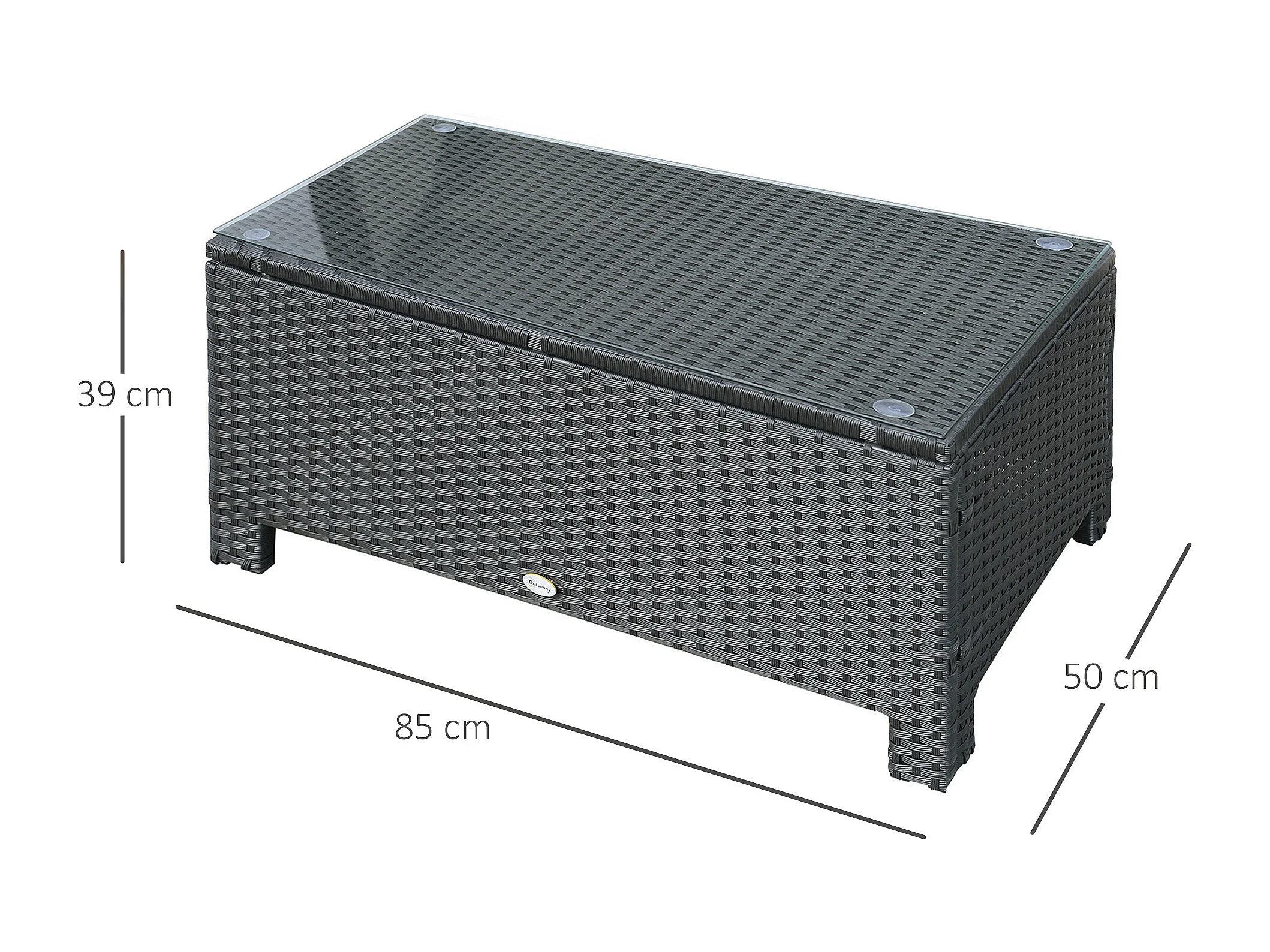 EasyComfort Ousunny Tavolino da Esterni in Rattan PE con Piano in Vetro Temperato, 85x50x39cm, Nero