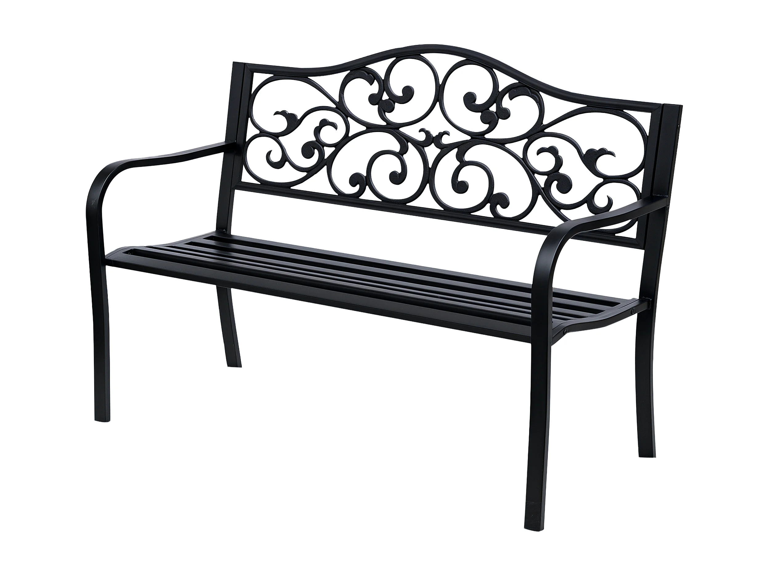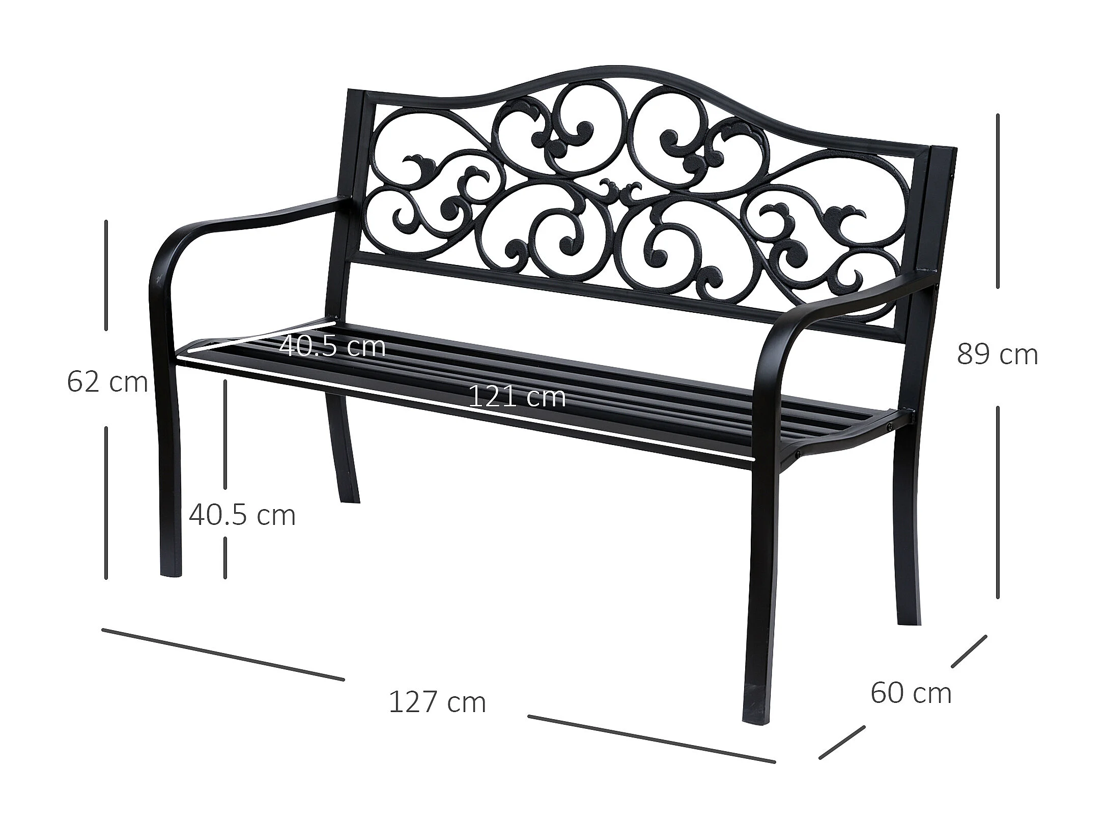 EasyComfort Panchina da Giardino 2 Posti con Schienale Decorato in Ghisa e Metallo, 127x60x89cm, Nero