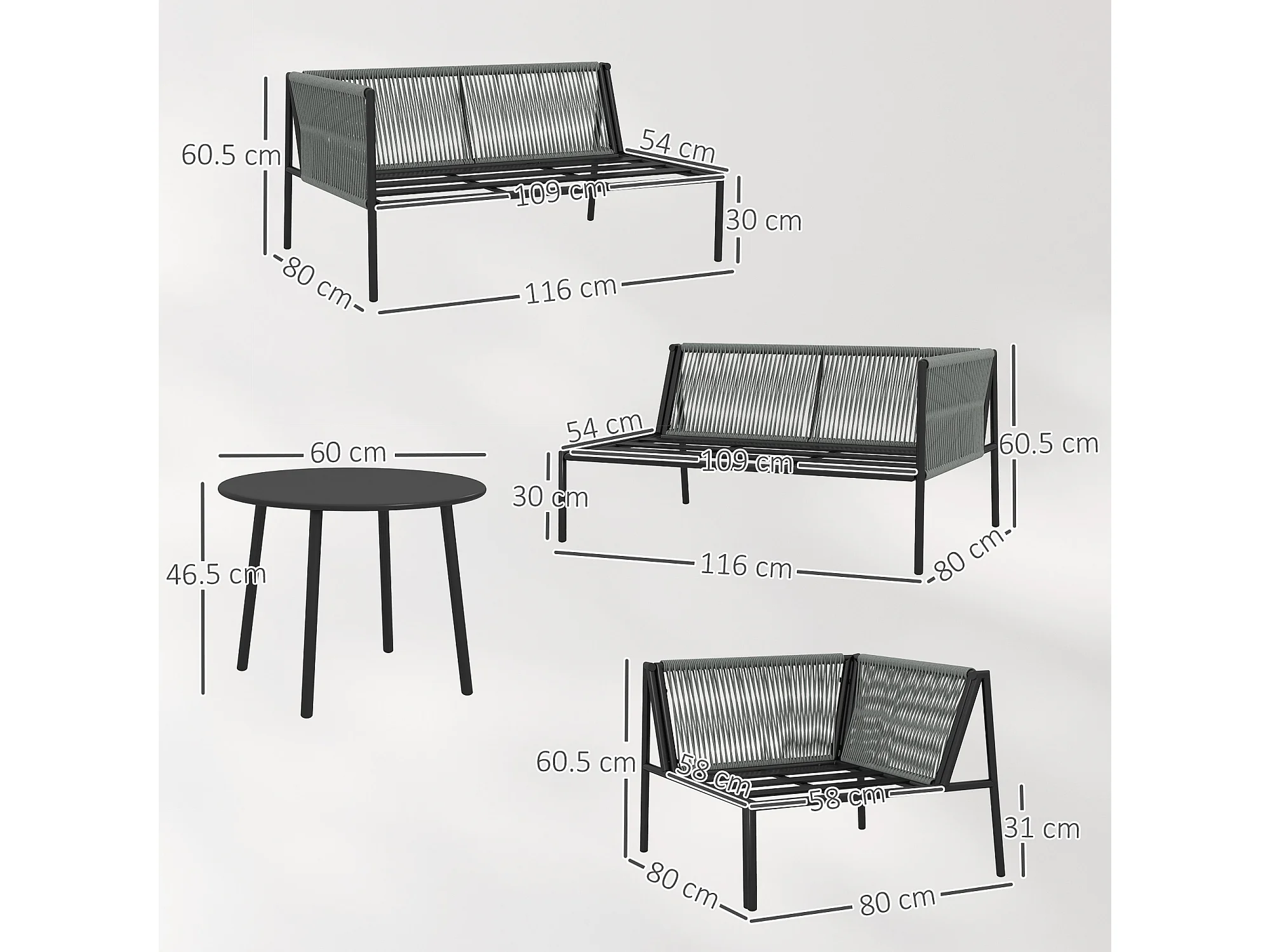 EasyComfort Salotto da Giardino in Rattan con Divano Angolare Modulabile, Tavolino da Caffè e Cuscini, Grigio