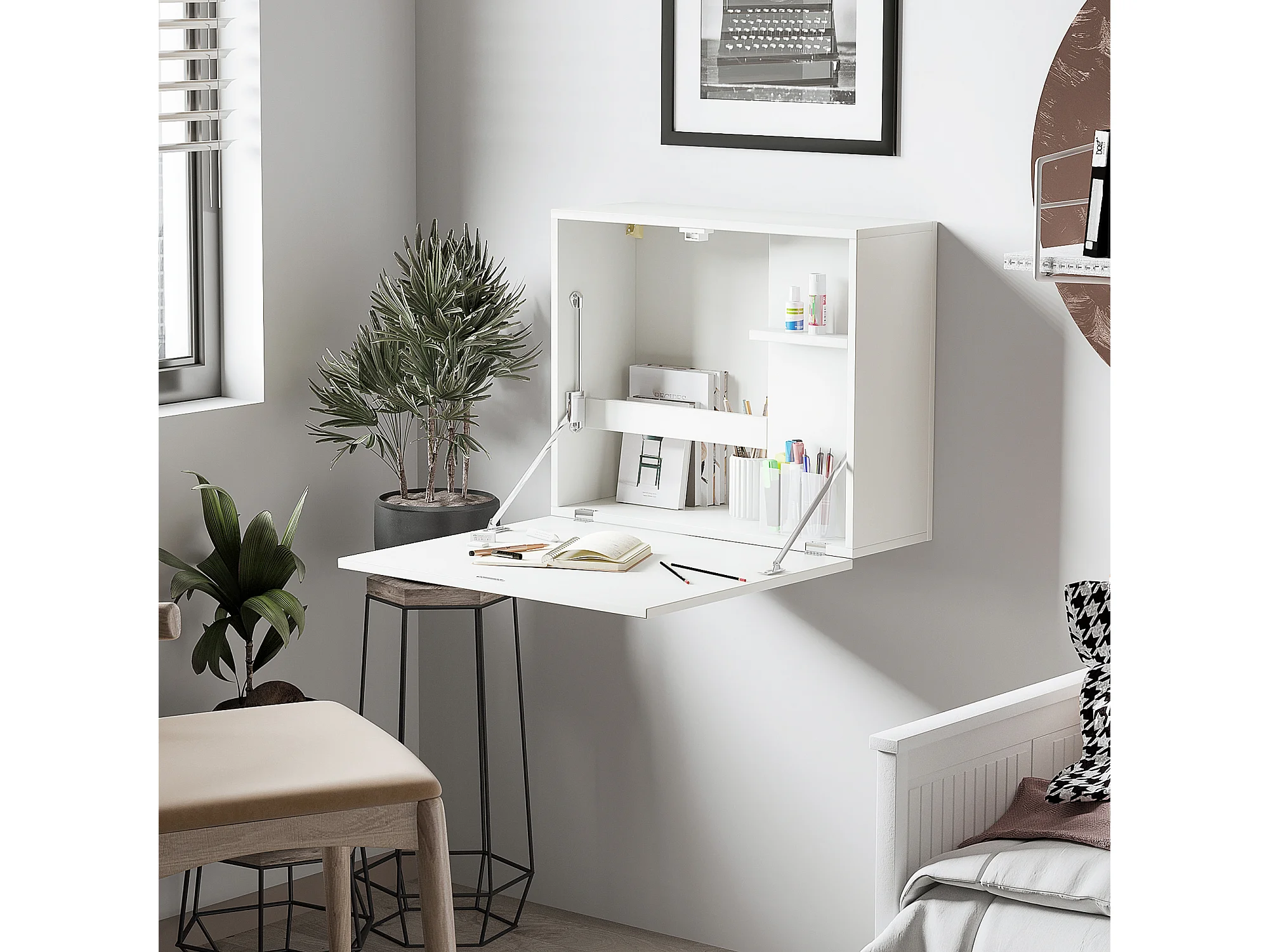 EasyComfort Scrivania a Muro Pieghevole e Salvaspazio con Ripiani, per Casa e Ufficio, in Truciolato e MDF, 60x21.5x50 cm, Bianco