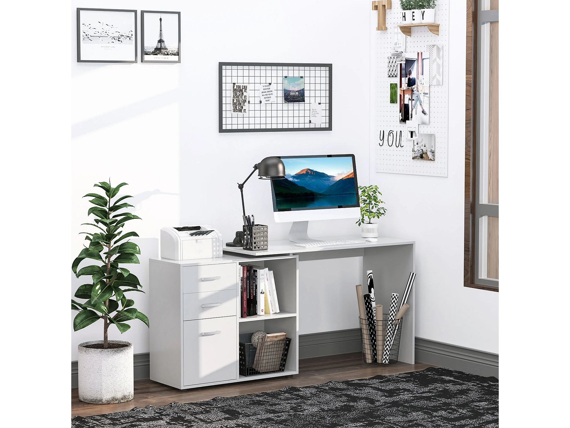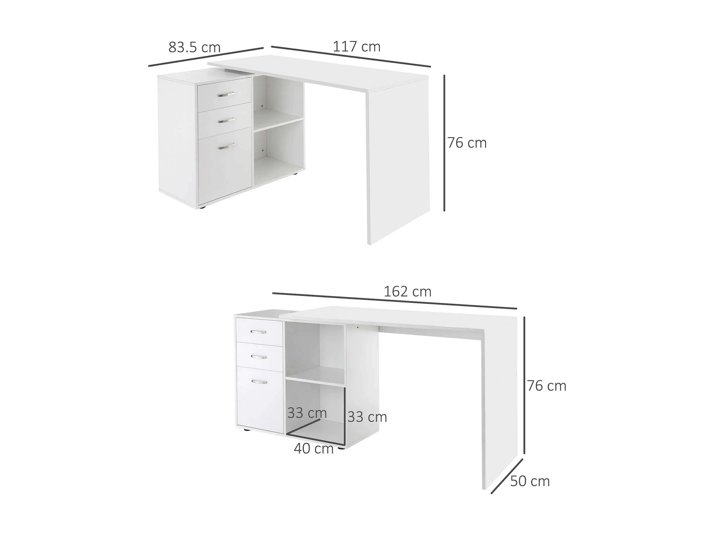 Easycomfort Scrivania Angolare Per Pc Con 2 Cassetti E Ripiani Aperti, Scrivania Ad Angolo Forma A L In Legno E Metallo, 117x83.5x76 Cm, Bianco
