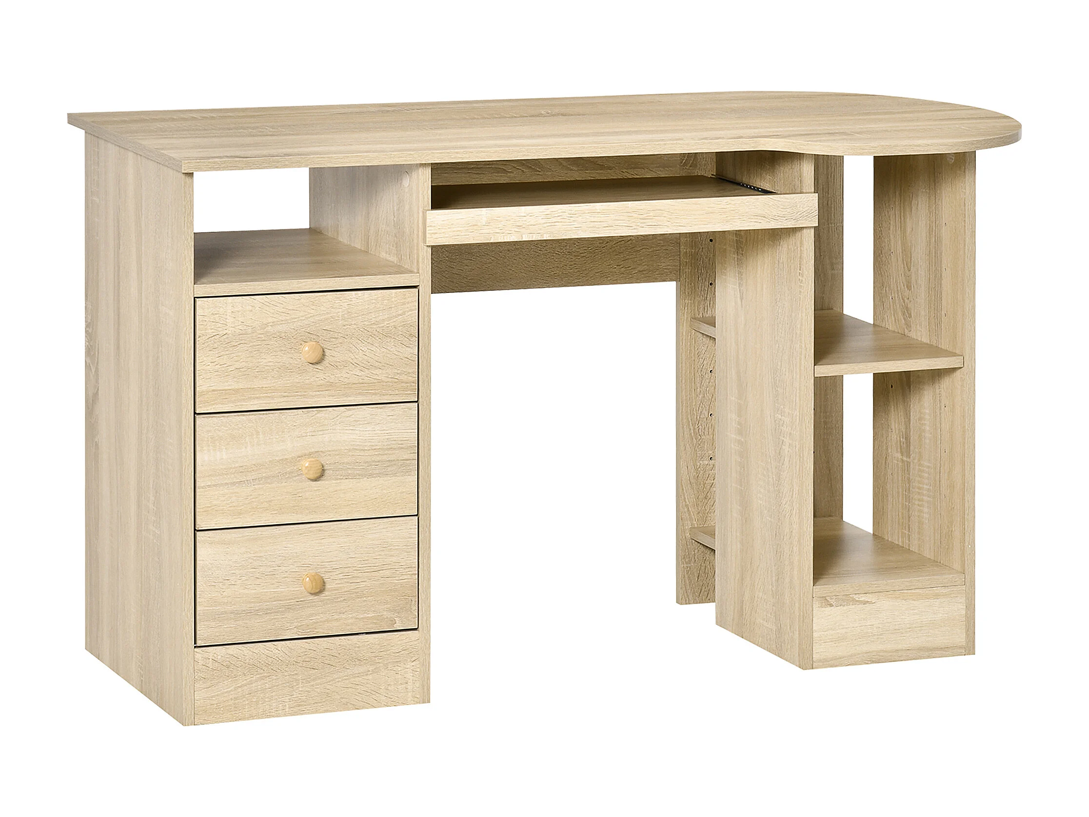 EasyComfort Scrivania da PC per Ufficio con Scaffali, Cassetti e Ripiano Testiera in Legno, 125x60x74cm