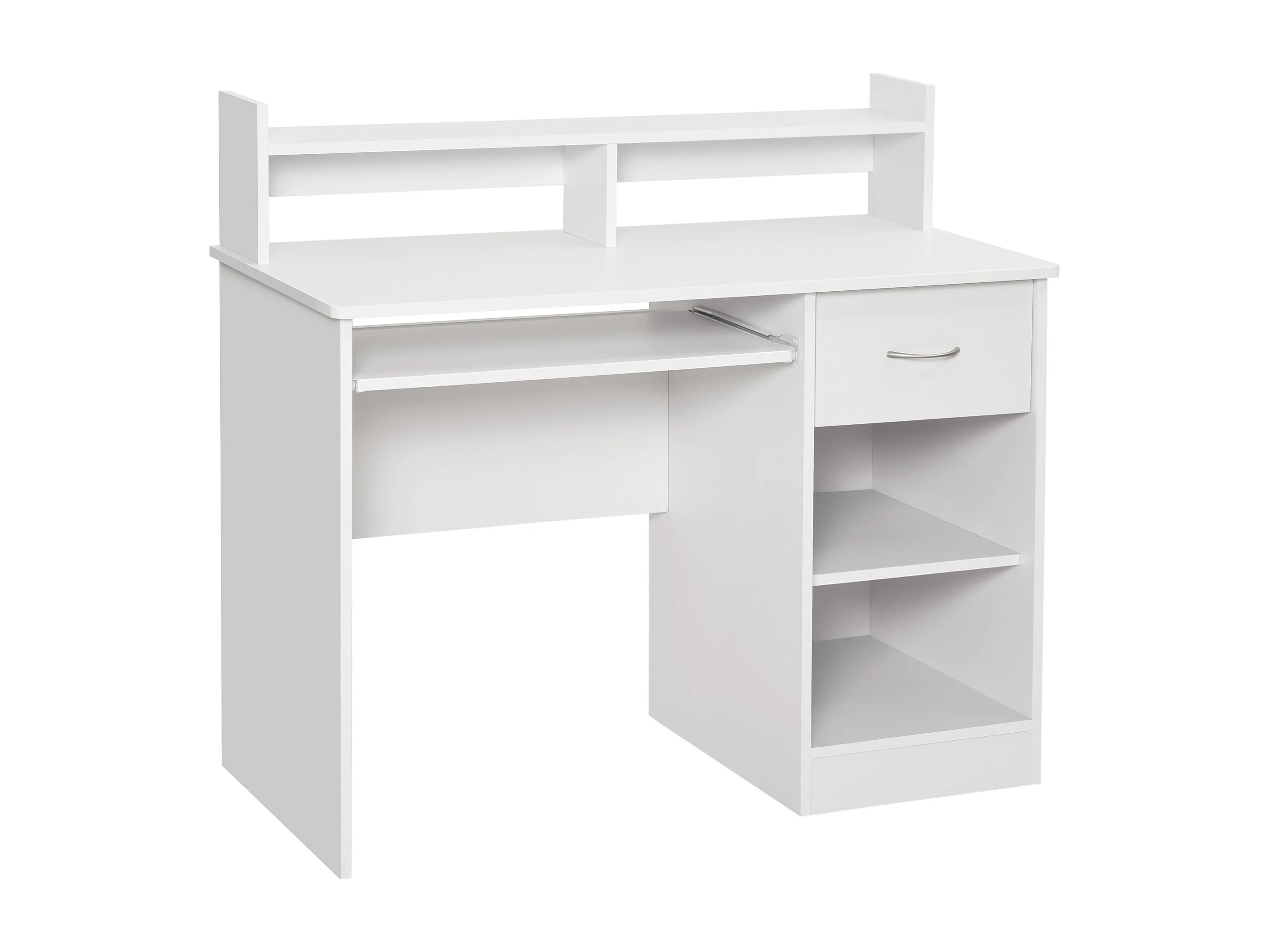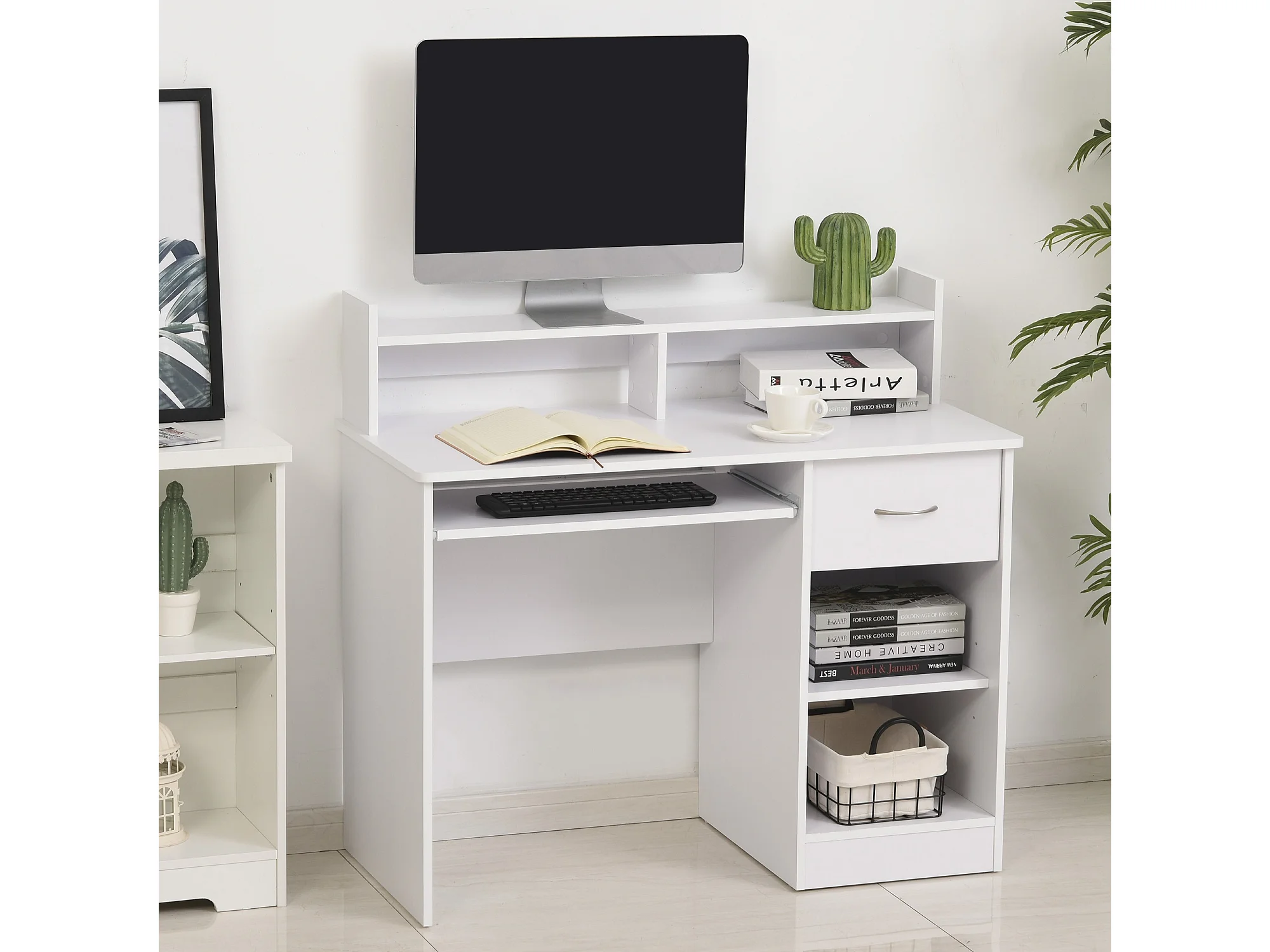 Easycomfort Scrivania Per Computer Compatta, Scrivania Pc Fisso In Legno Bianco Con Ripiano Tastiera Estraibile E Mensole 104x48x95.5cm