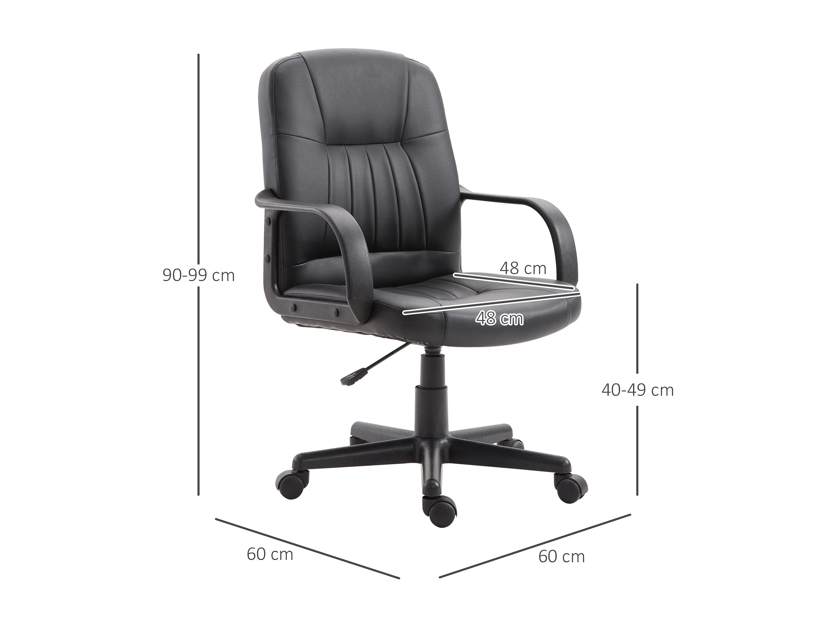 EasyComfort Sedia da Ufficio Ergonomica e Girevole, Poltrona da Ufficio con Altezza Regolabile in Similpelle 60x60x94-103cm Nero