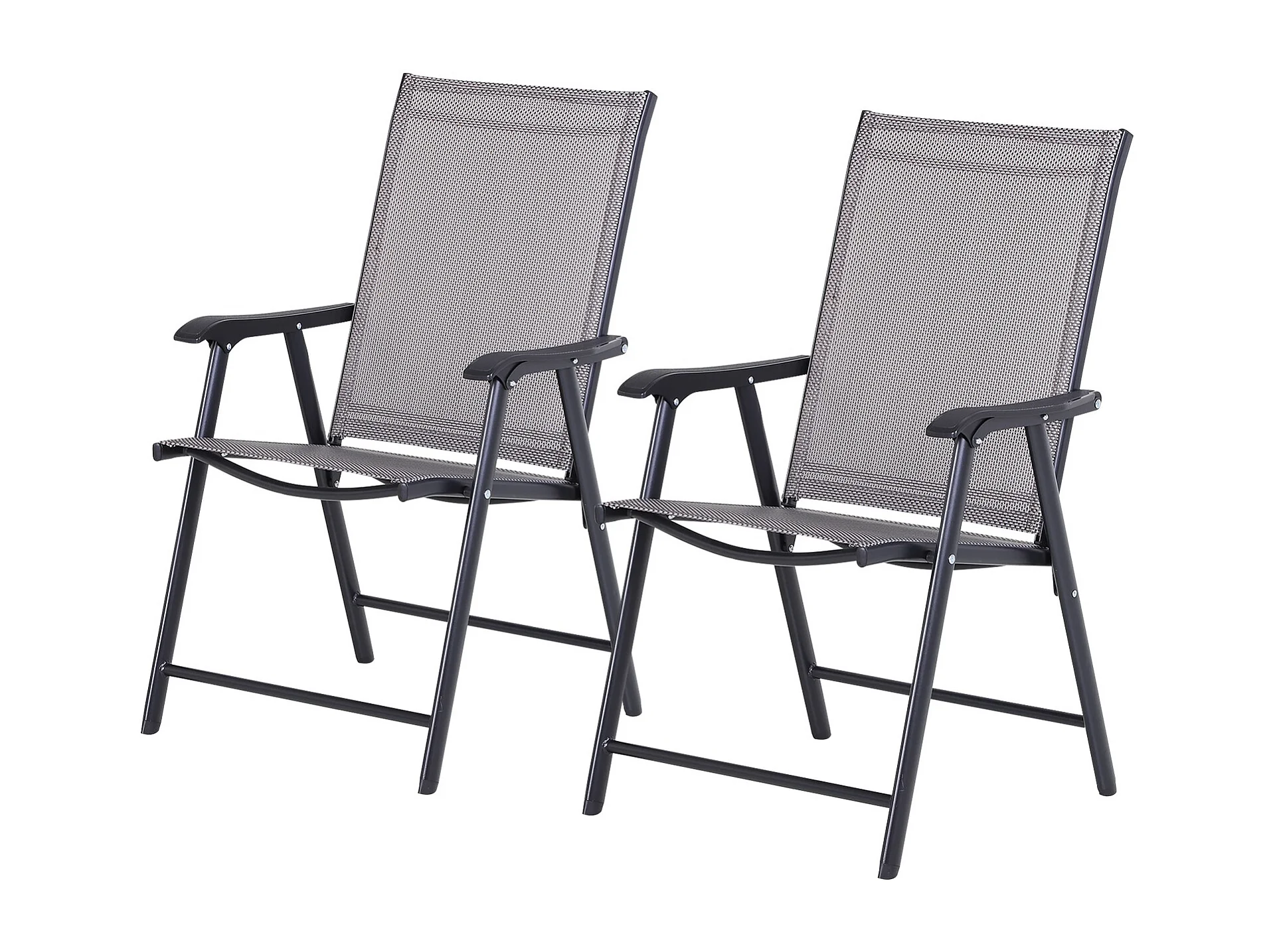 EasyComfort Set 2 Sedie Pieghevoli da Esterni in Acciaio e Texteline Per Giardino Veranda Terrazzo, Grigio, 58 x 64 x 94cm