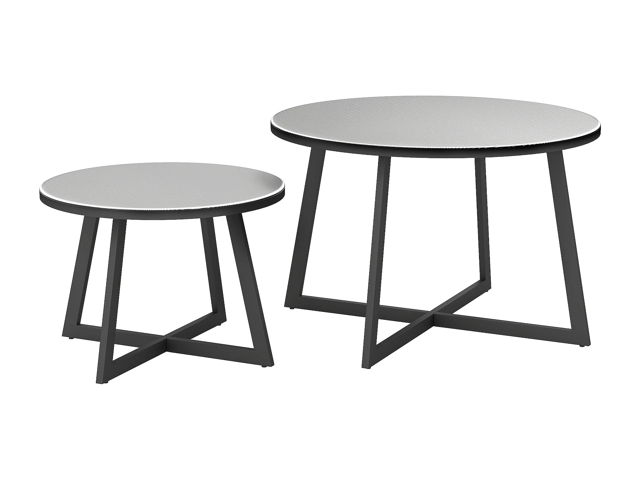 EasyComfort Set 2 Tavolini per Esterni con Piano in Vetro Temperato, Ø70x45 cm e Ø50x35 cm, Grigio