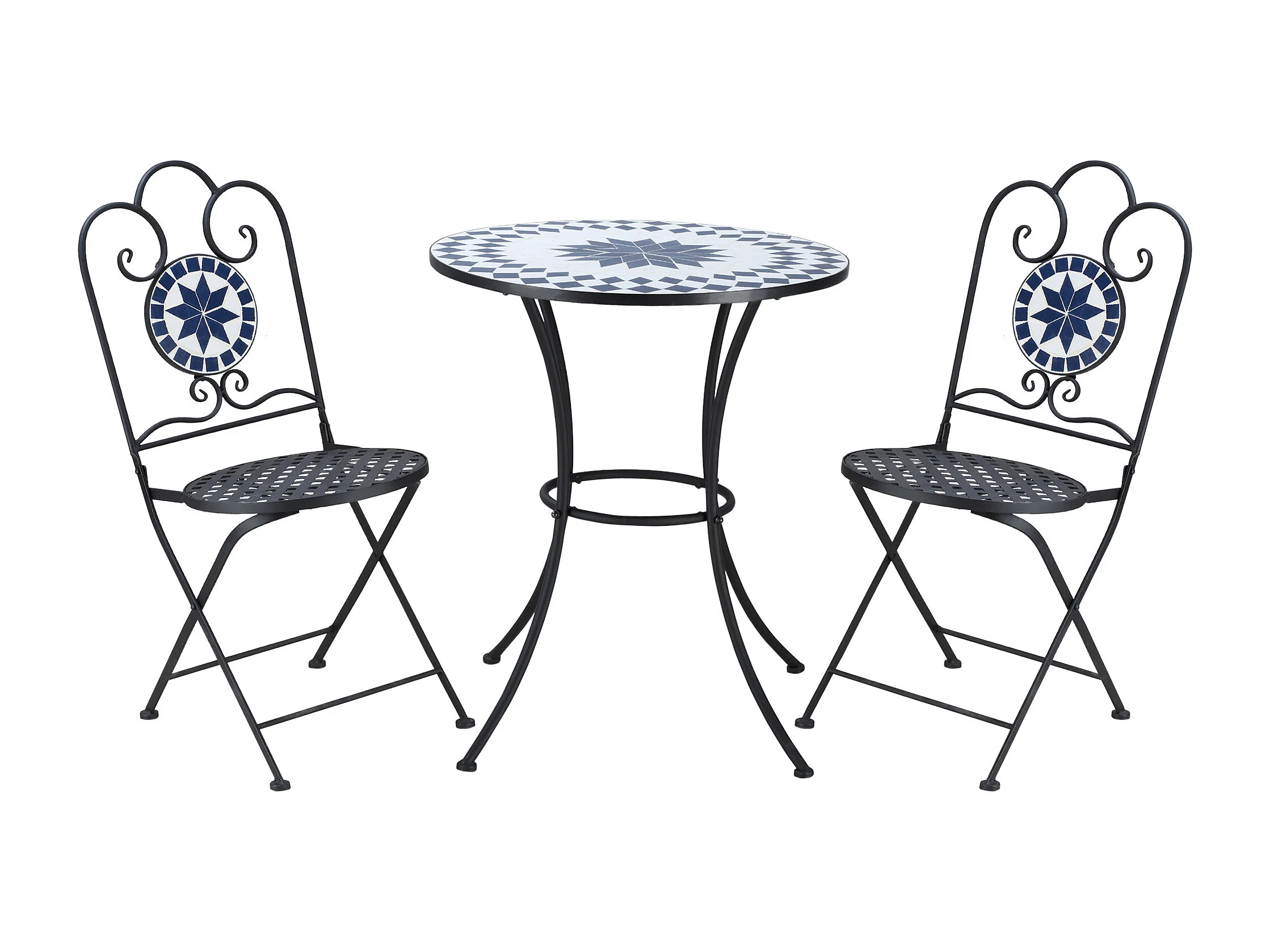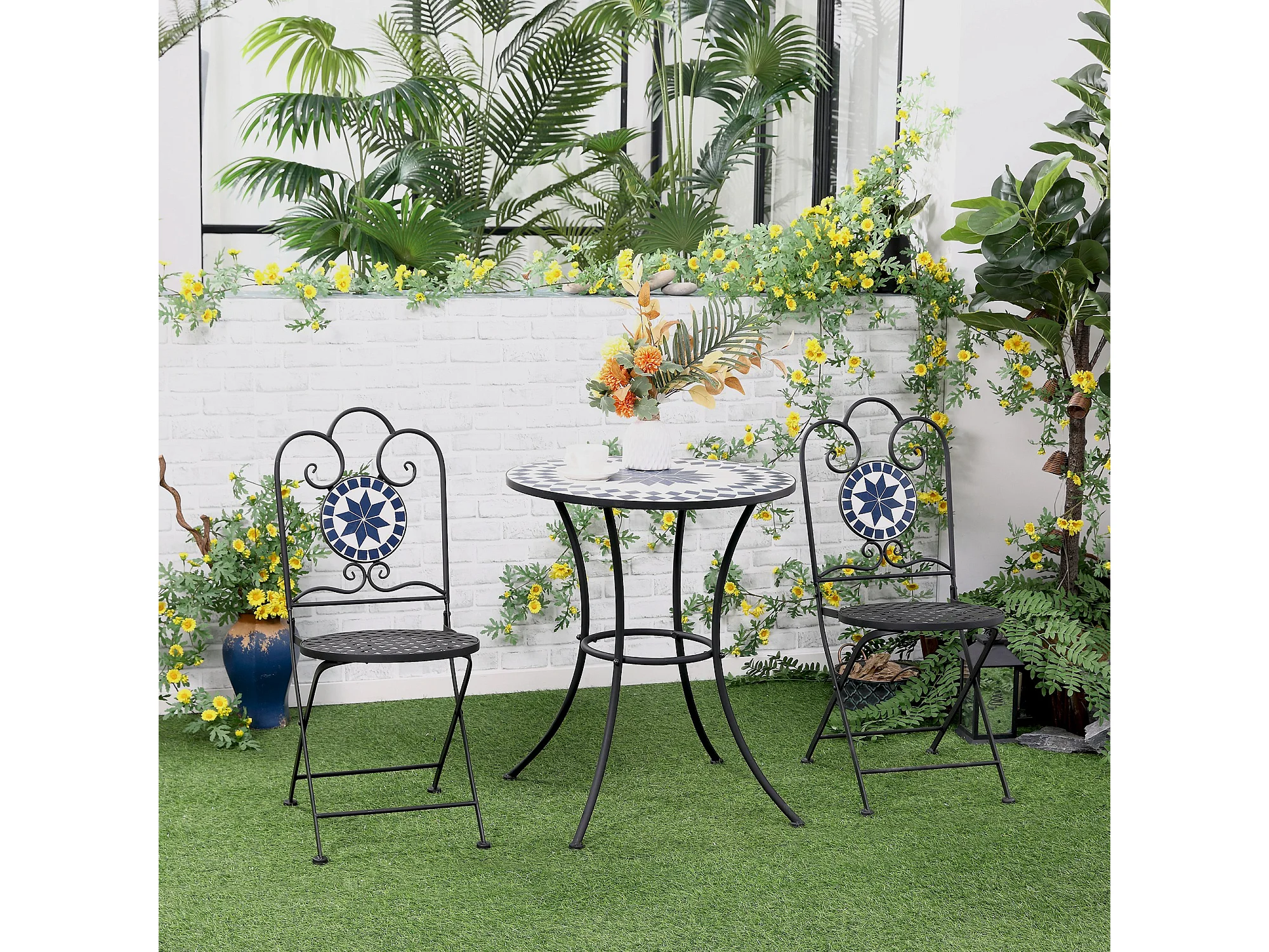 EasyComfort Set da Giardino 3 Pezzi con 2 Sedie Pieghevoli e 1 Tavolino Rotondo a Mosaico