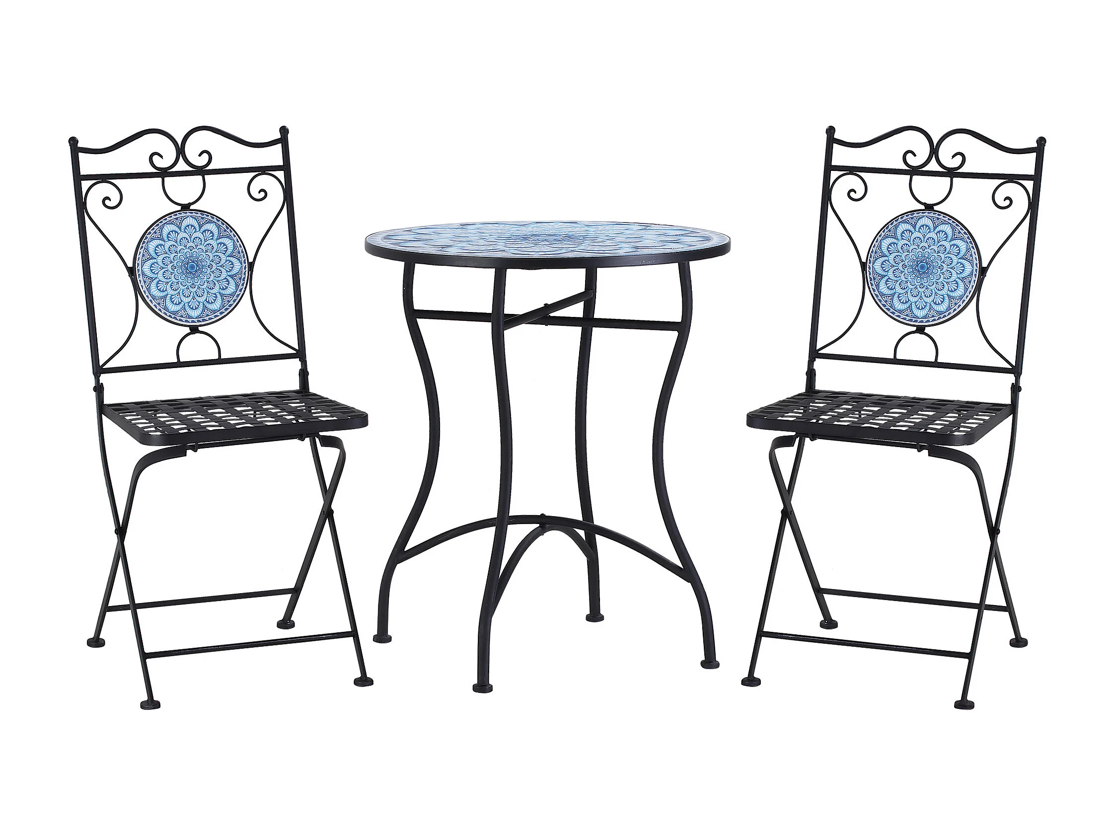 EasyComfort Set da Giardino 3 Pezzi, Tavolino e 2 Sedie Pieghevoli con Mosaico, Blu