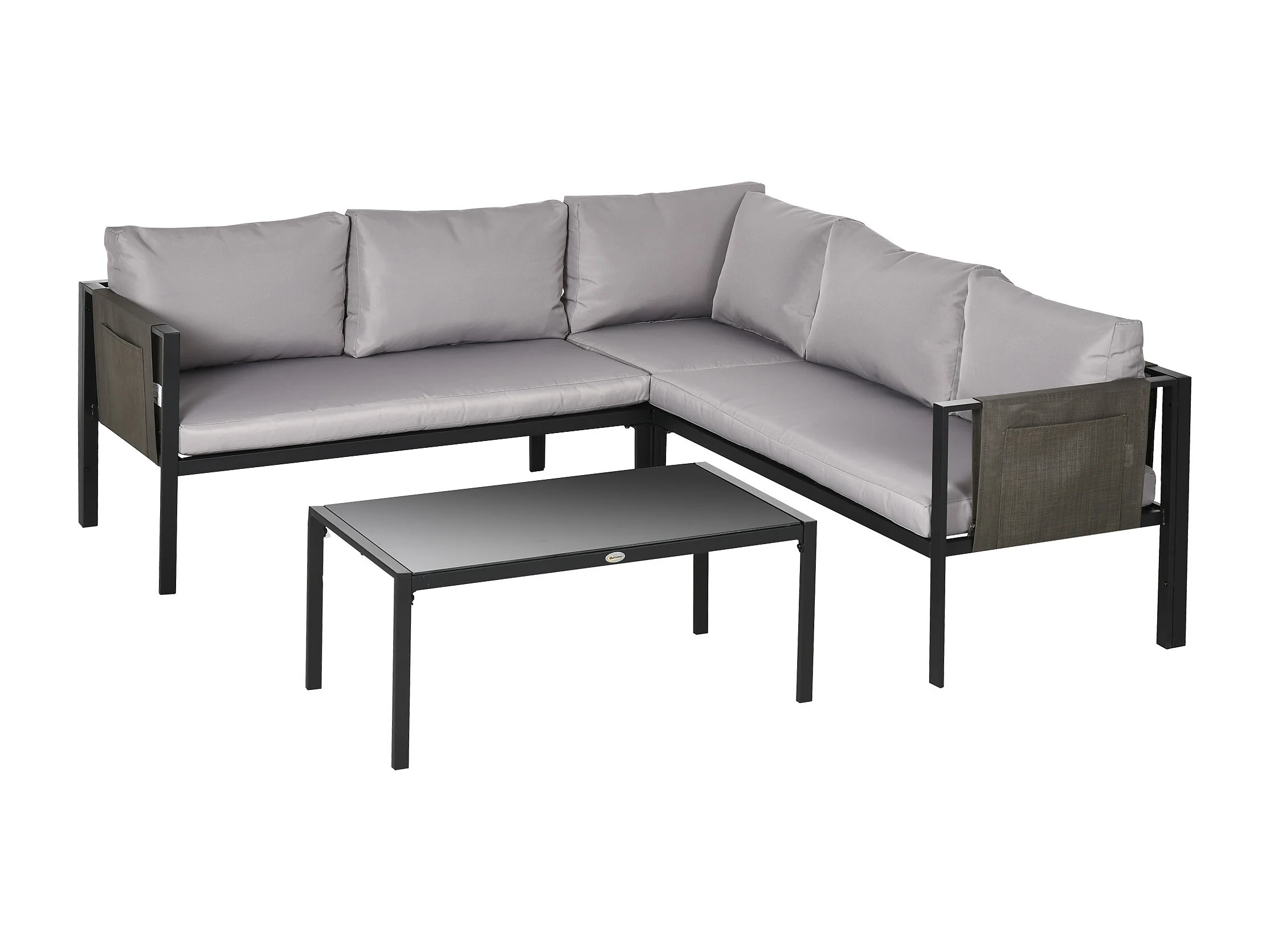 EasyComfort Set da Giardino 4 Pezzi con 2 Divanetti, Poltrona Angolare e Tavolino da Caffè in Vetro Temperato