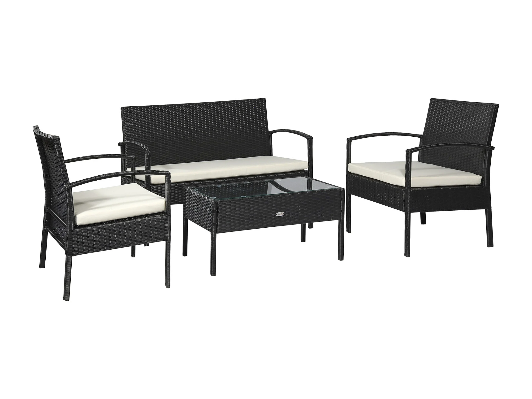 EasyComfort Set da Giardino 4 Pezzi in Rattan PE con Tavolino da Giardino, 2 Poltroncine e Divano 2 posti, Nero e Crema