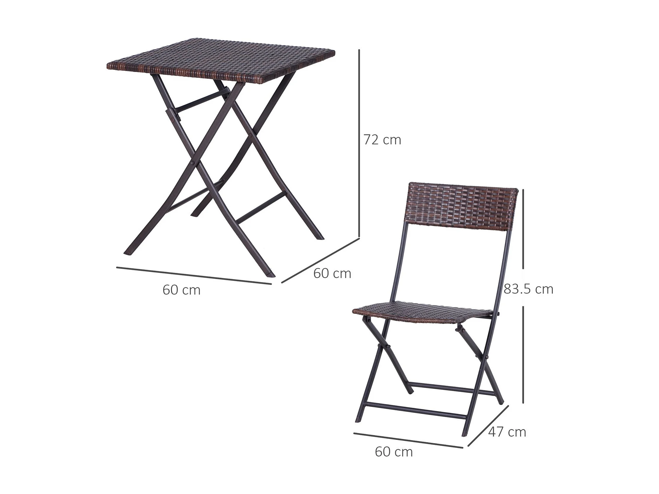 EasyComfort Set da Giardino Pieghevole da 3 Pezzi in Rattan PE e Metallo, Set 2 Sedie e Tavolino da Caffè, Protezione dai Raggi UV, Set di Mobili da