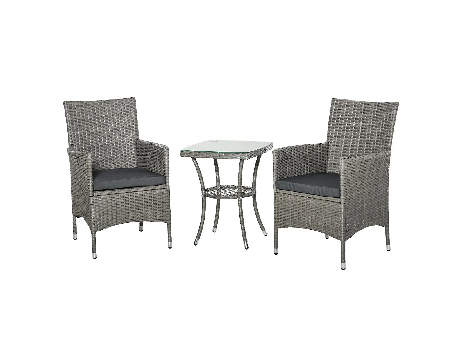 EasyComfort Set Giardino Esterno 3 Pezzi in Rattan PE e Acciaio, Set 2 Sedie con Cuscini Lavabili, Braccioli, Tavolino da Caffè con Piano in Vetro, S