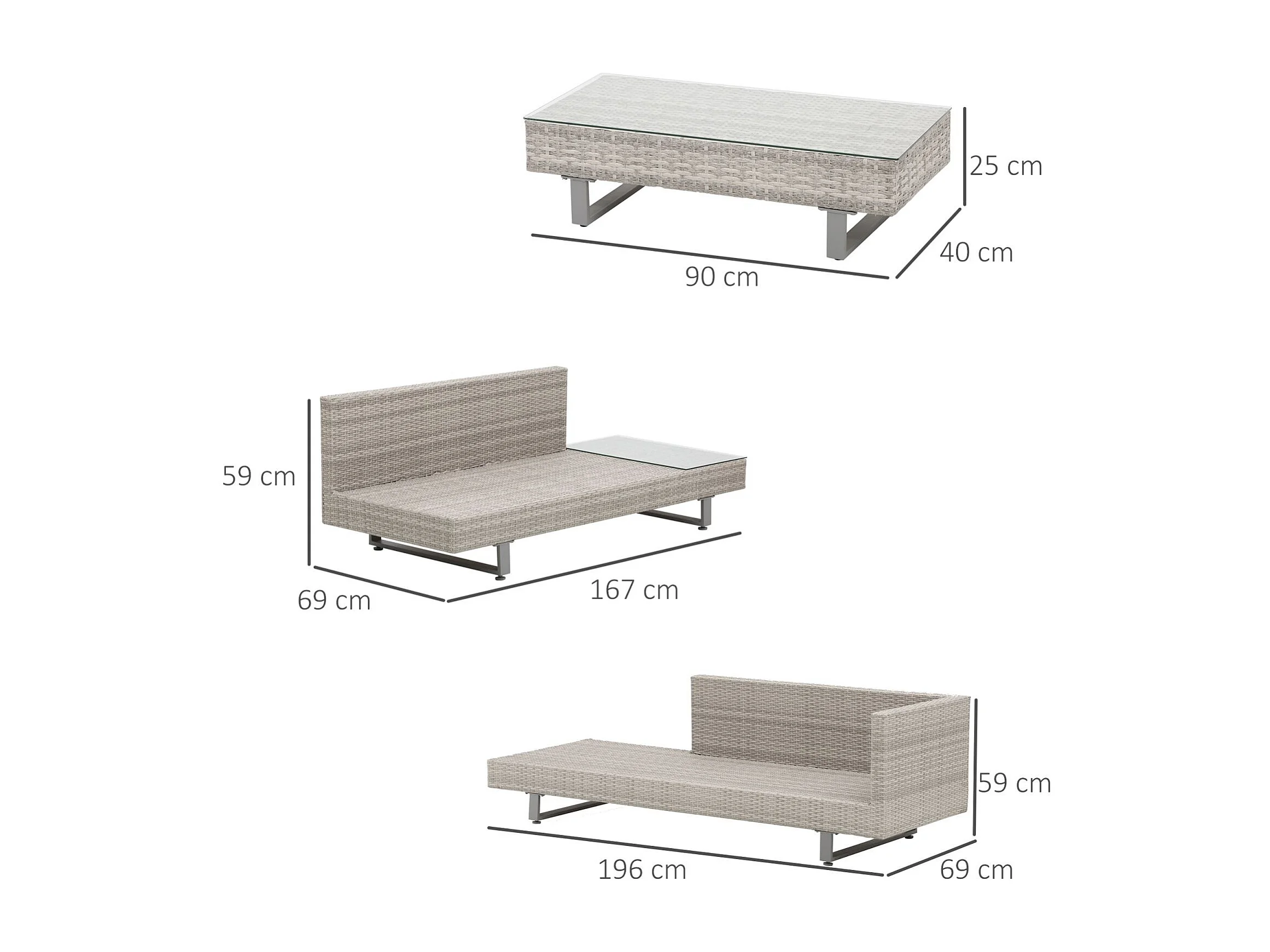EasyComfort Set Giardino Esterno, Salotto da Giardino, Set Divani da Esterno con Tavolino da Giardino, Mobili da Giardino in Rattan Grigio