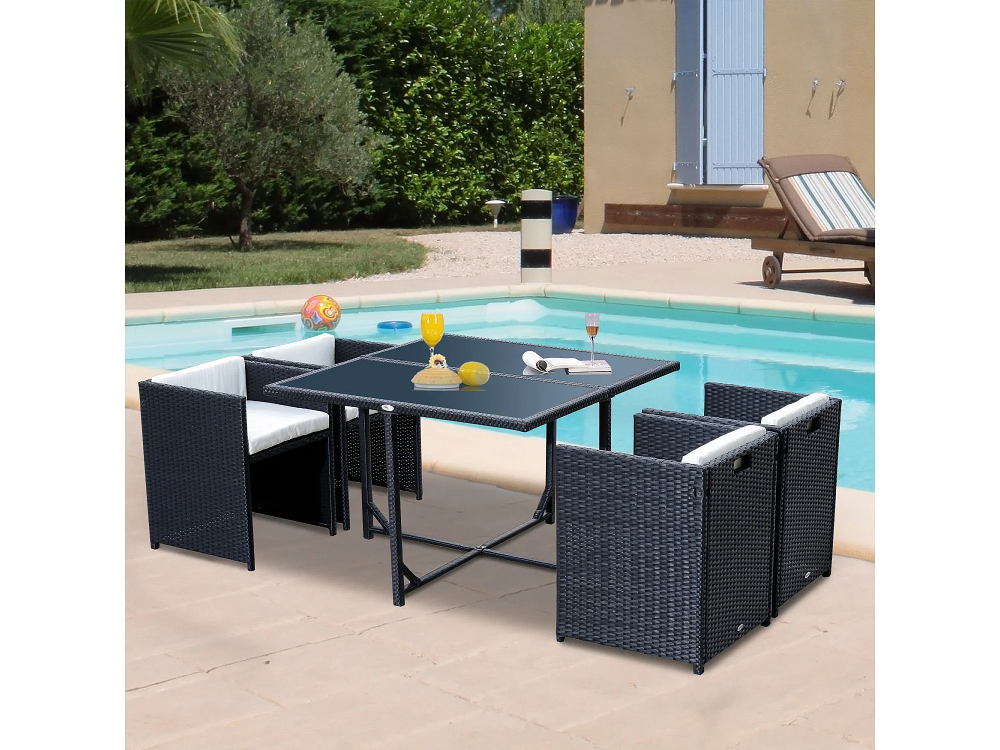 EasyComfort Set Mobili da Giardino 5pz Set Tavolo da Pranzo con 4 Sedie con Cuscini Combinabili a Rettangolo, Nero, 109x109x72 cm