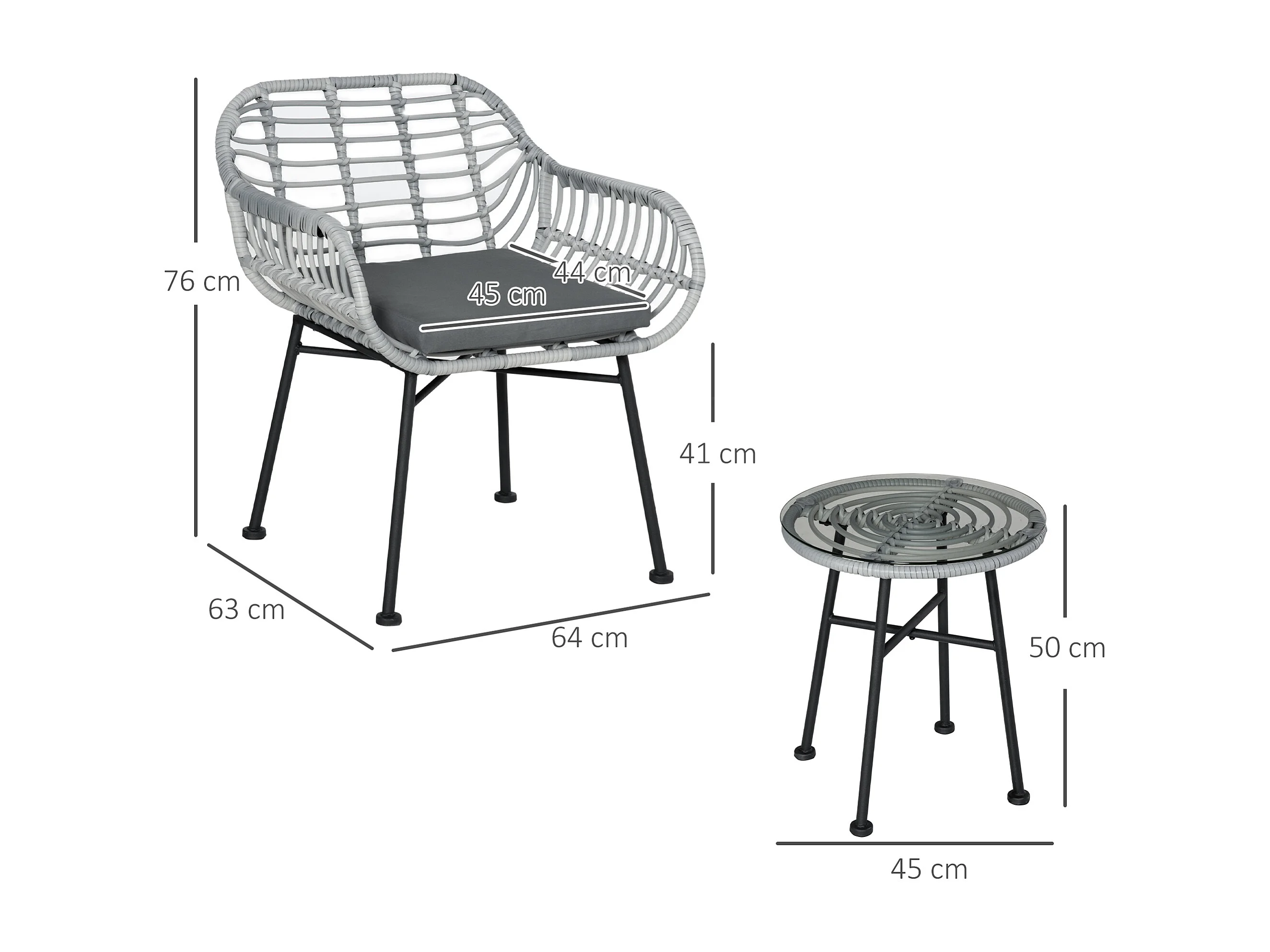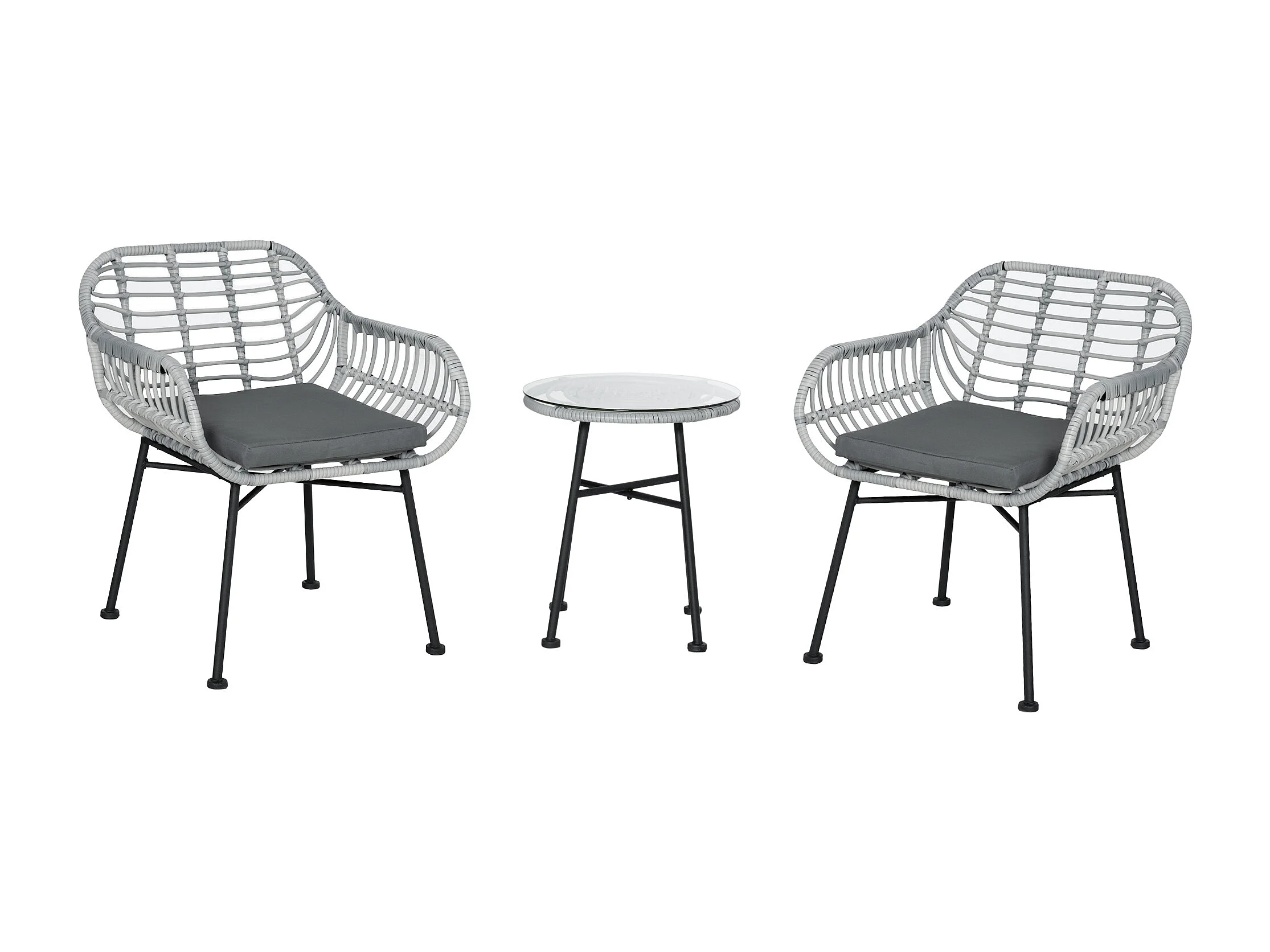 EasyComfort Set Mobili da Giardino in Rattan PE con 2 Sedie e Tavolino con Ripiano in Vetro, Grigio