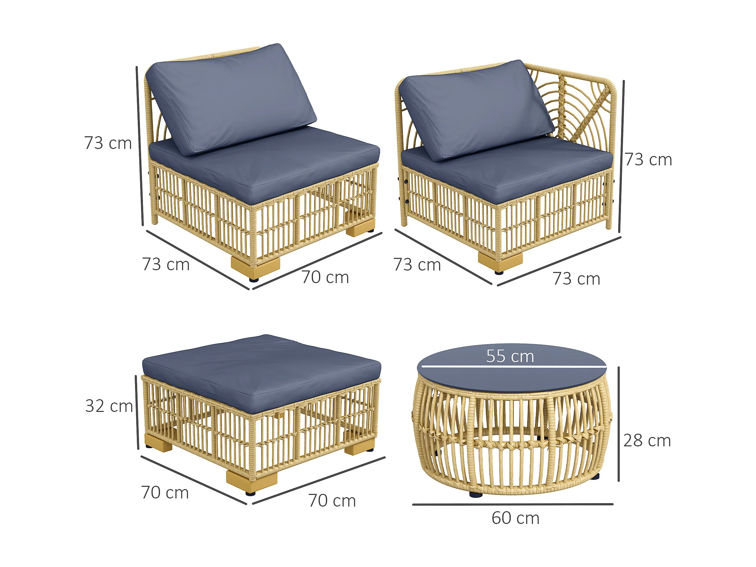 EasyComfort Set Salotto in Rattan da Giardino con Divano Modulabile, Cuscini e Tavolino da Caffè, Grigio