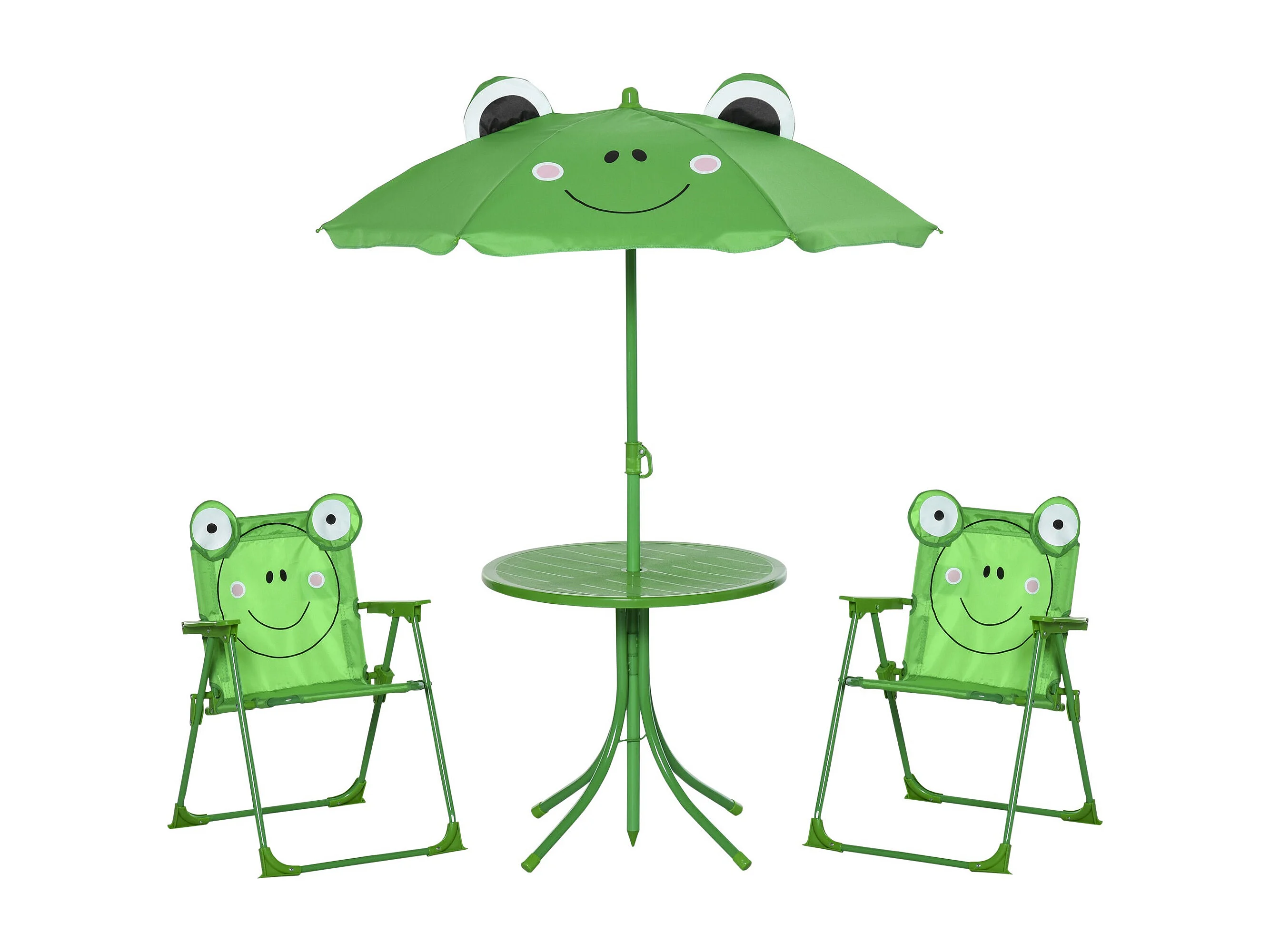EasyComfort Set Tavolo da Giardino con 2 Sedie Pieghevoli, Tavolino con Sedie da Esterno con Ombrellone per Bambini in Metallo e Poliestere, Verde