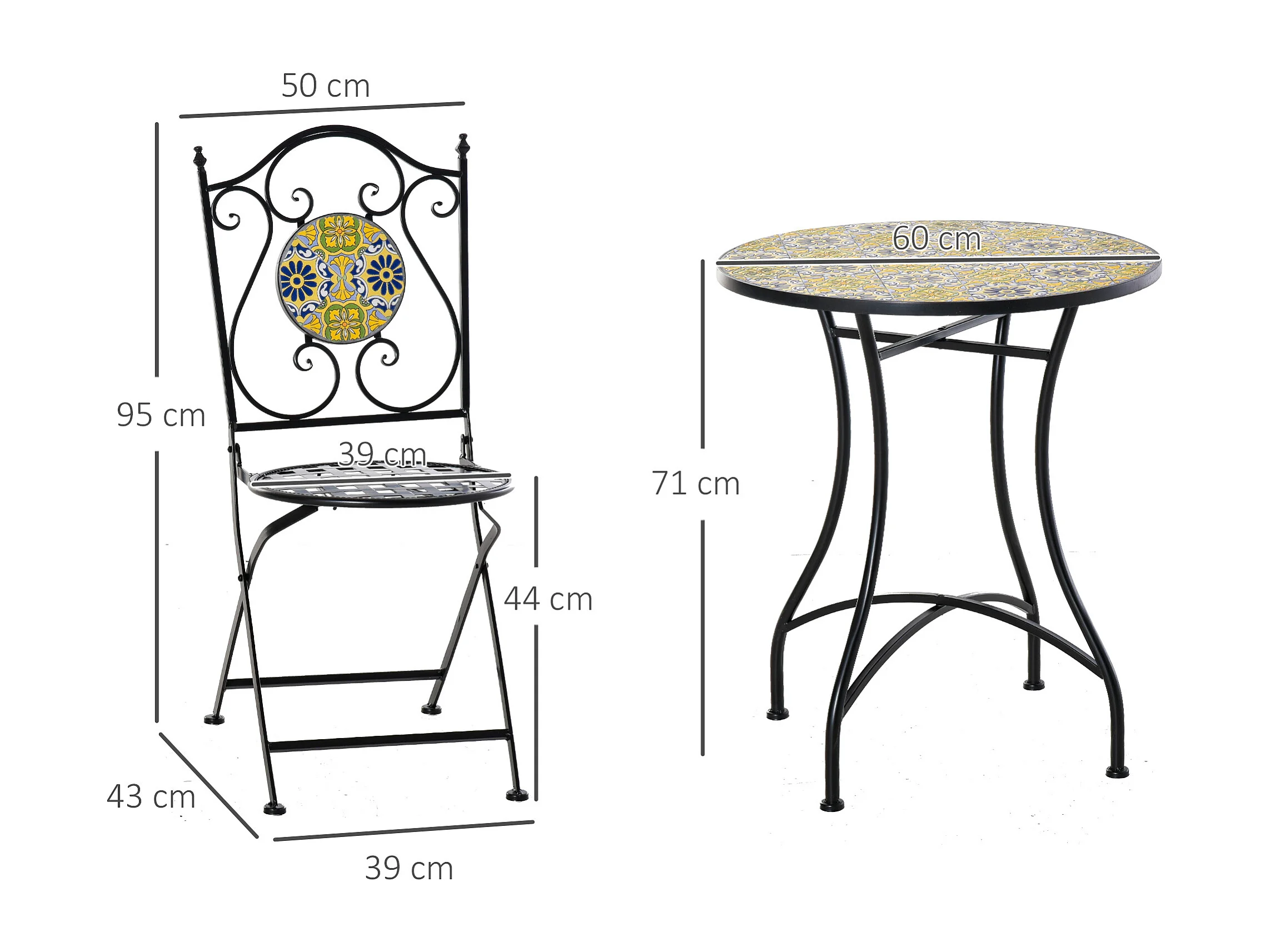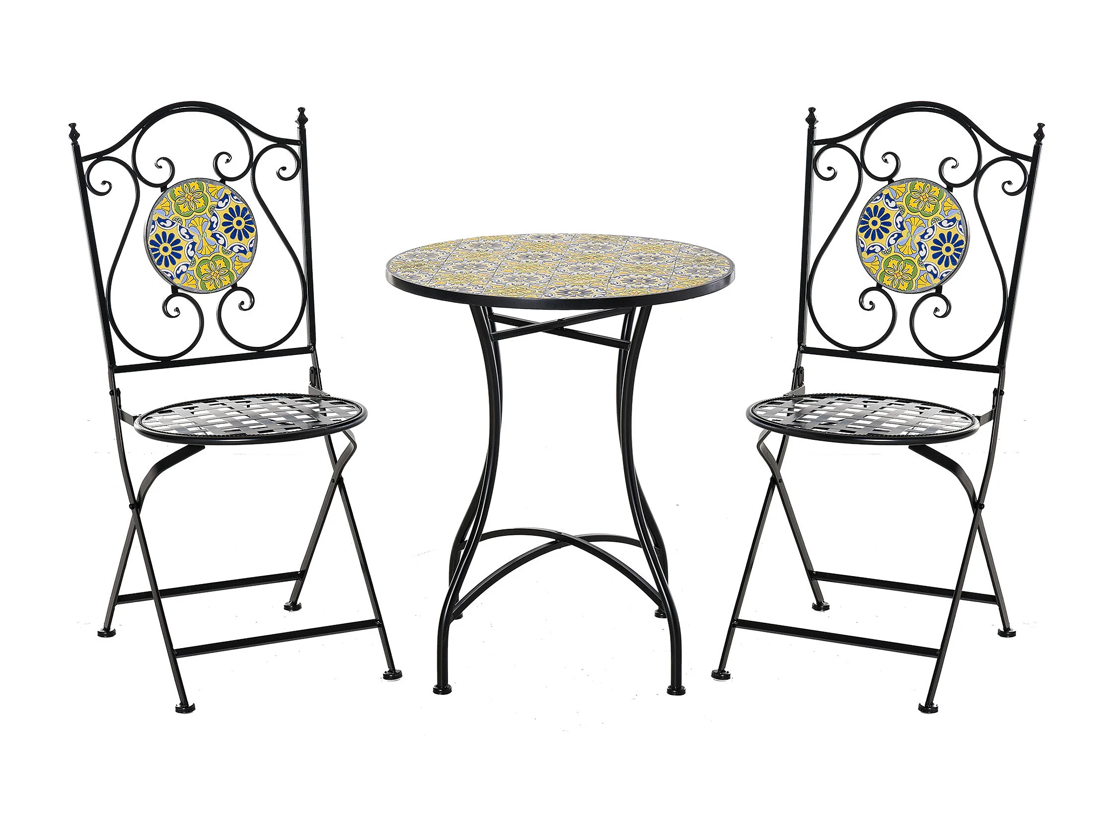 EasyComfort Set Tavolo e Sedie da Balcone 3 Pezzi, Set da Giardino Pieghevoli in Metallo con Maioliche Colorate, Multicolore