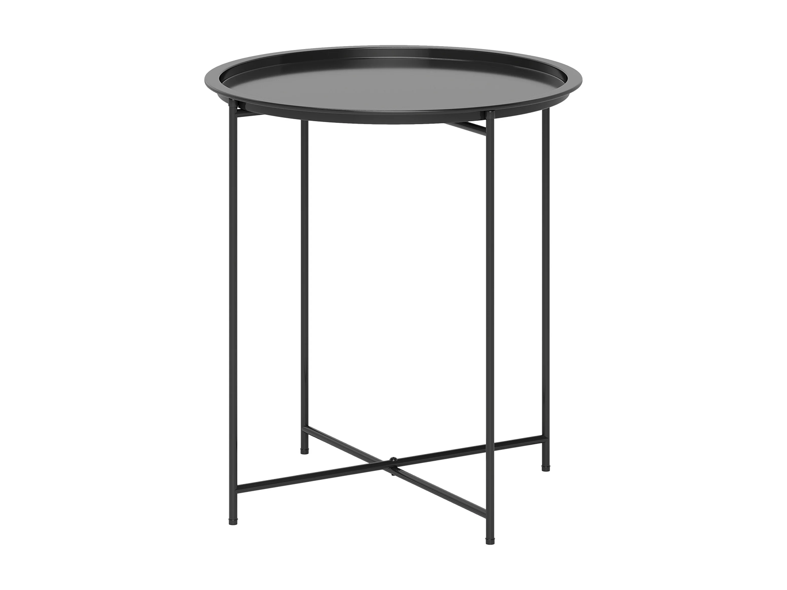 EasyComfort Tavolino da Giardino con Vassoio Rimovibile e Gambe Pieghevoli in Acciaio, Ø46x50 cm, Nero