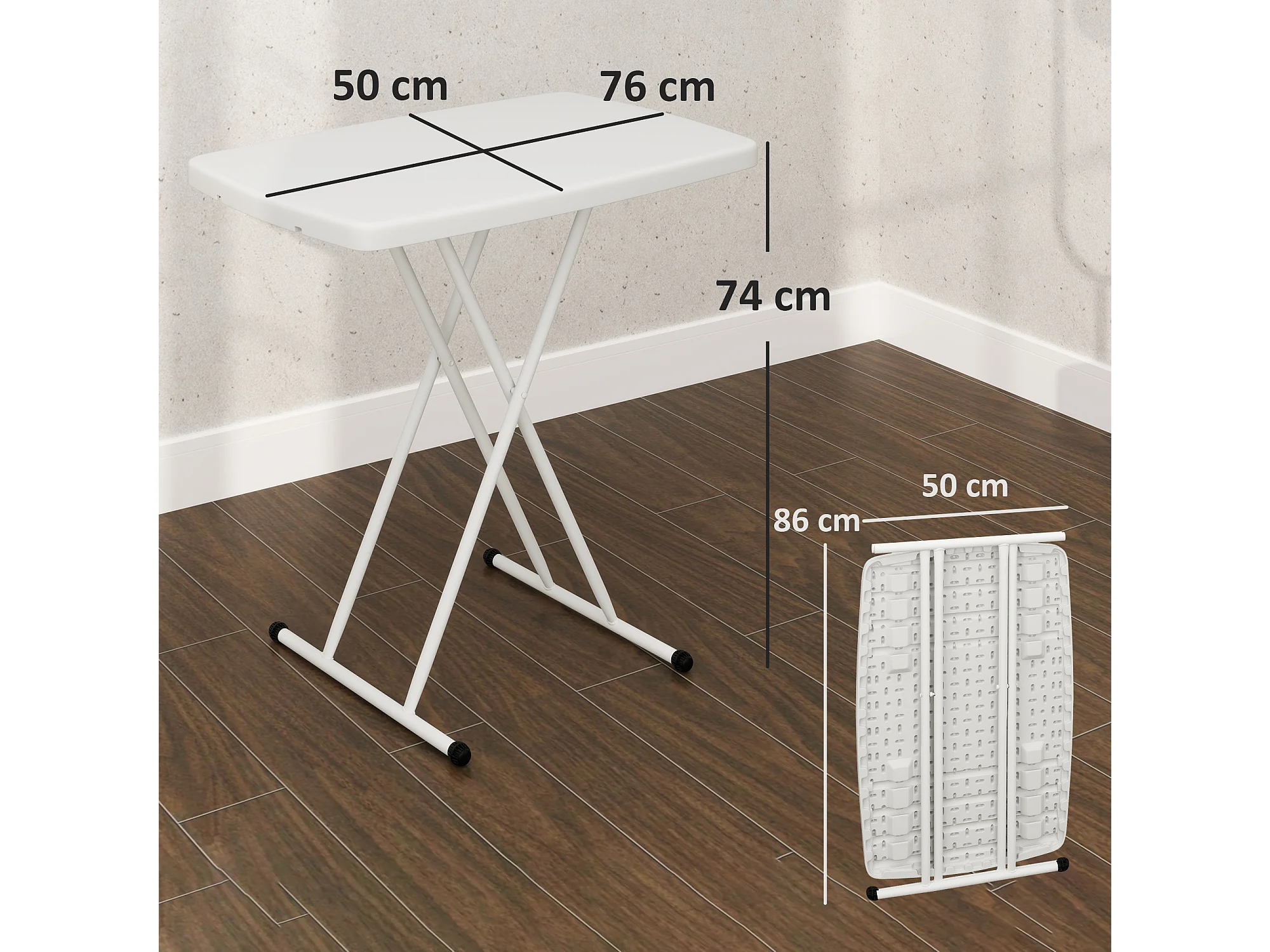 EasyComfort Tavolino da Giardino Pieghevole con Altezza Regolabile, Metallo e HDPE, Bianco