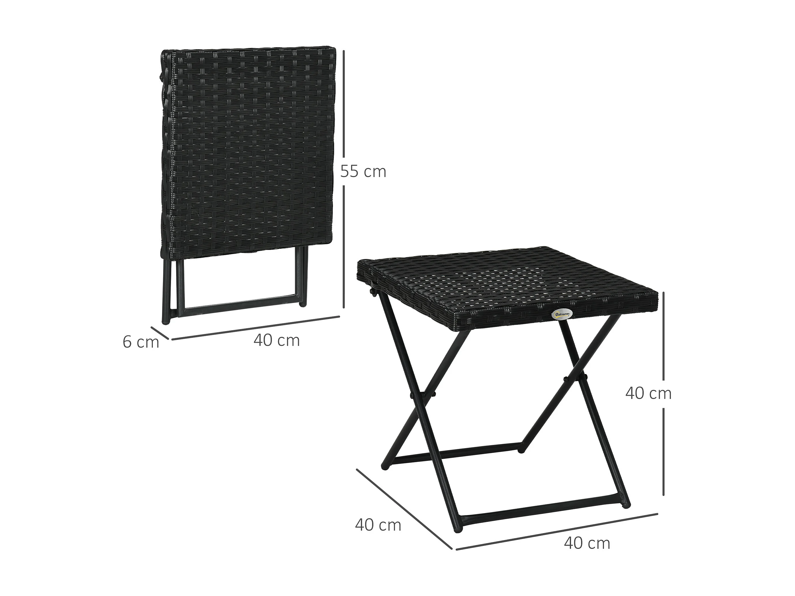 EasyComfort Tavolino da Giardino Pieghevole Salvaspazio in Rattan Sintetico e Acciaio, 40x40x40cm, Nero
