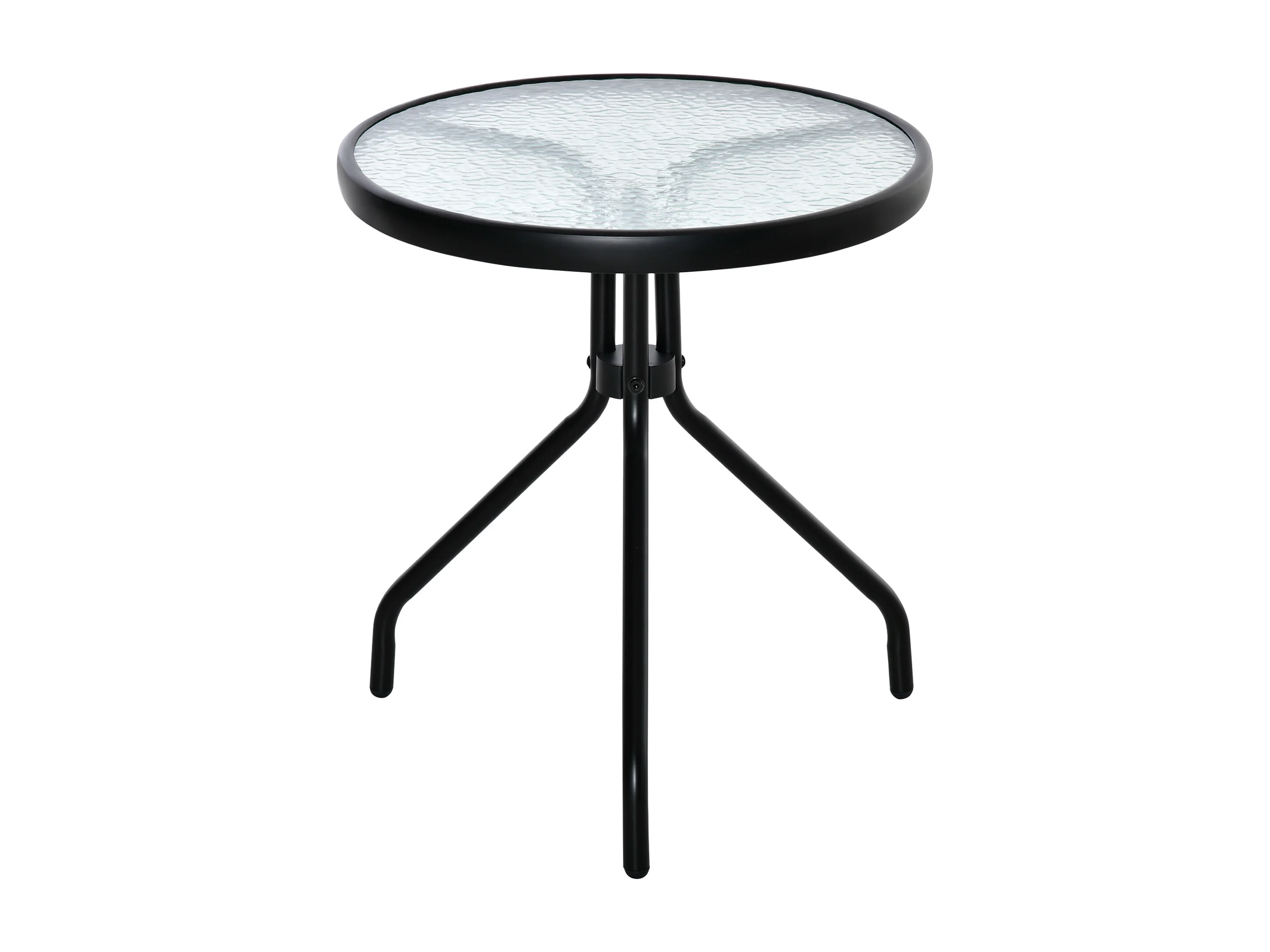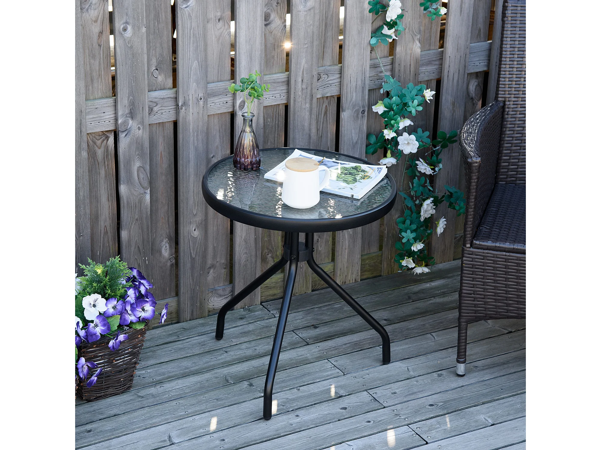 Easycomfort Tavolino da Giardino Rotondo con Ripiano in Vetro e Struttura in Metallo, Φ50x55cm, Nero