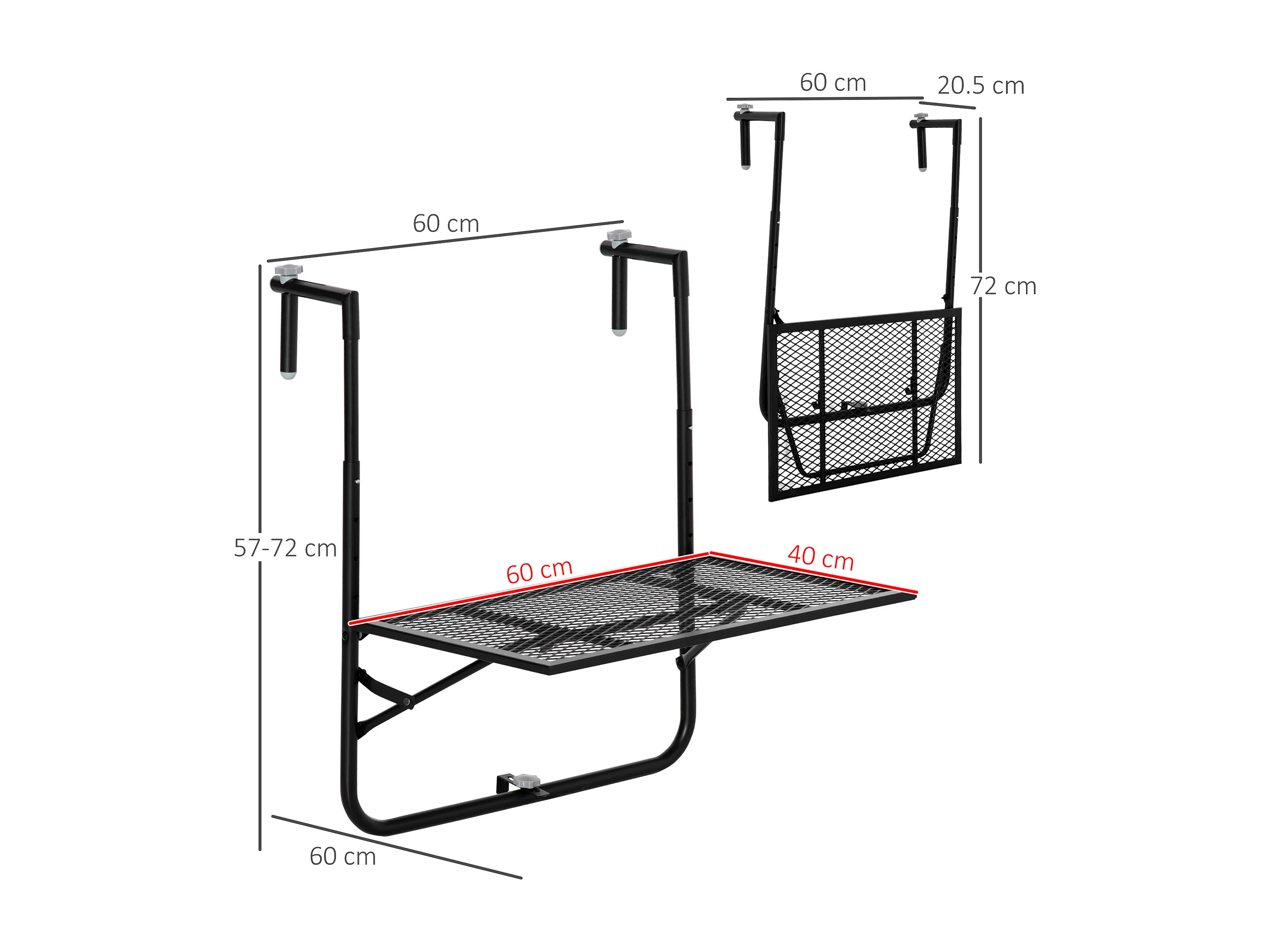 Easycomfort Tavolo da Ringhiera Pieghevole e Regolabile in Metallo, 60x60x57-72cm, Nero