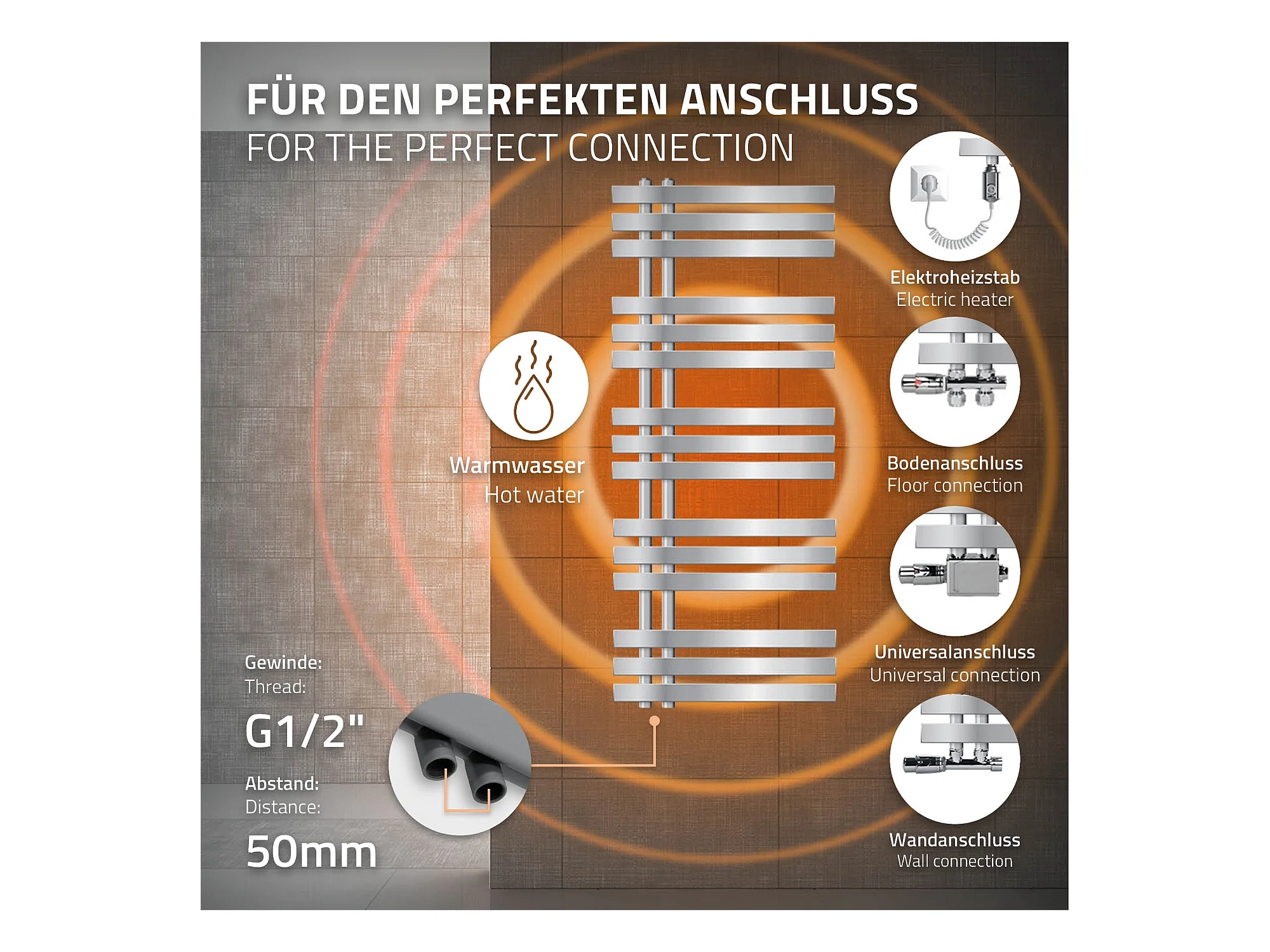 ECD Germany Radiatore da Bagno Scaldasalviette - 500 x 1200 mm - Cromato - Curvo con Attacco Laterale - Radiatore Scaldasalviette Asciugabiancheria 500x1200 mm