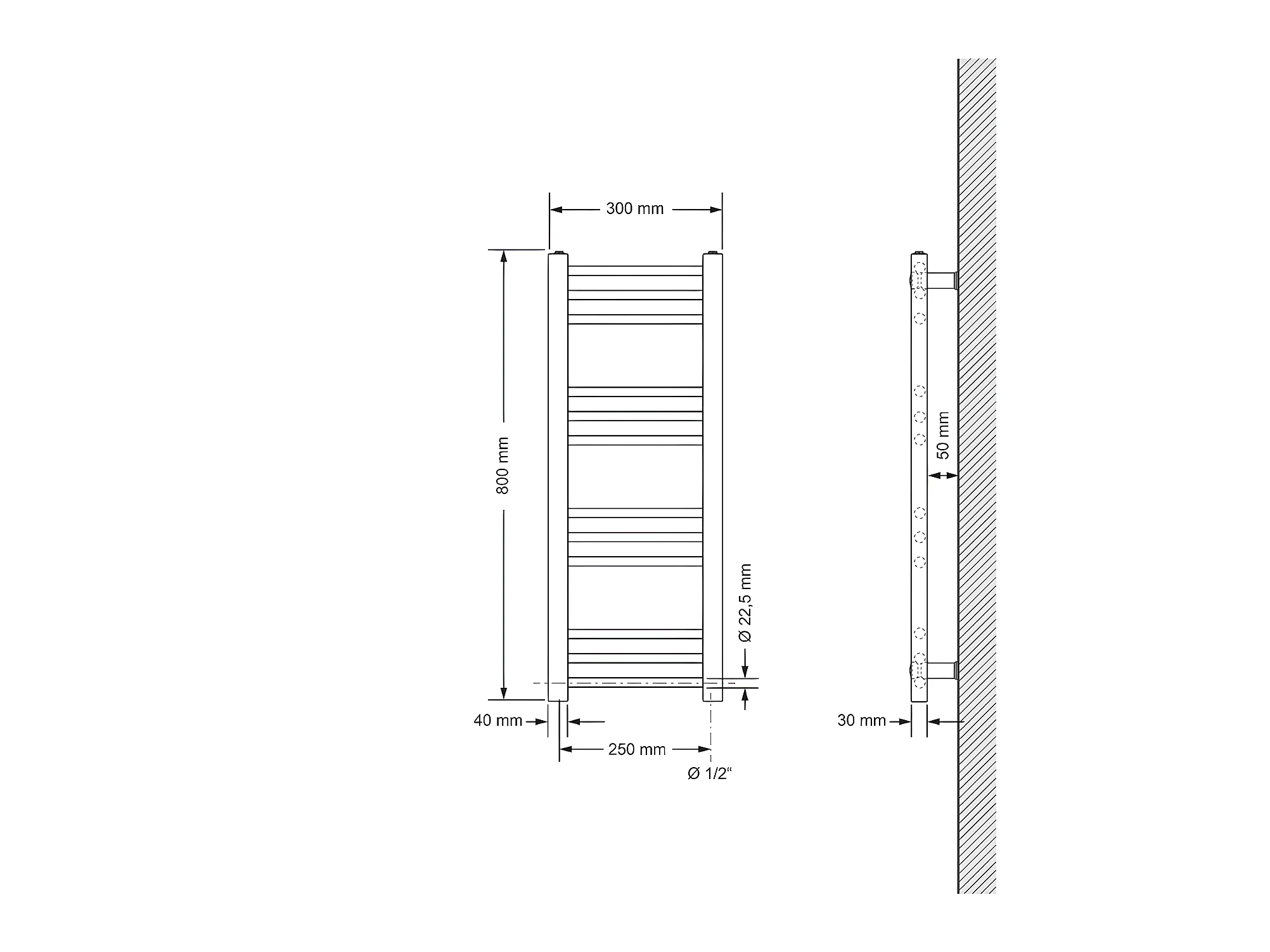 Radiatore Sahara, 500 x 800 mm, cromato, attacco laterale