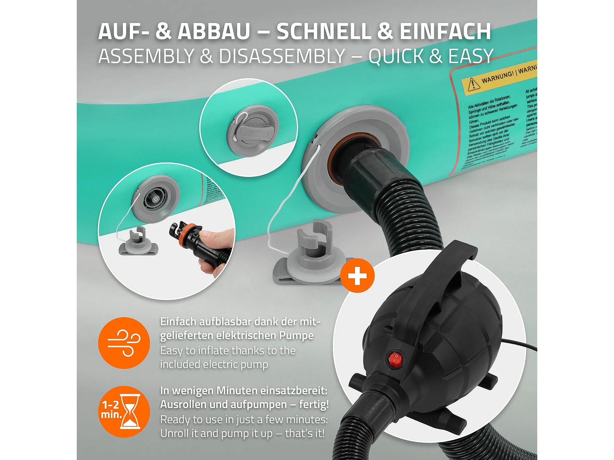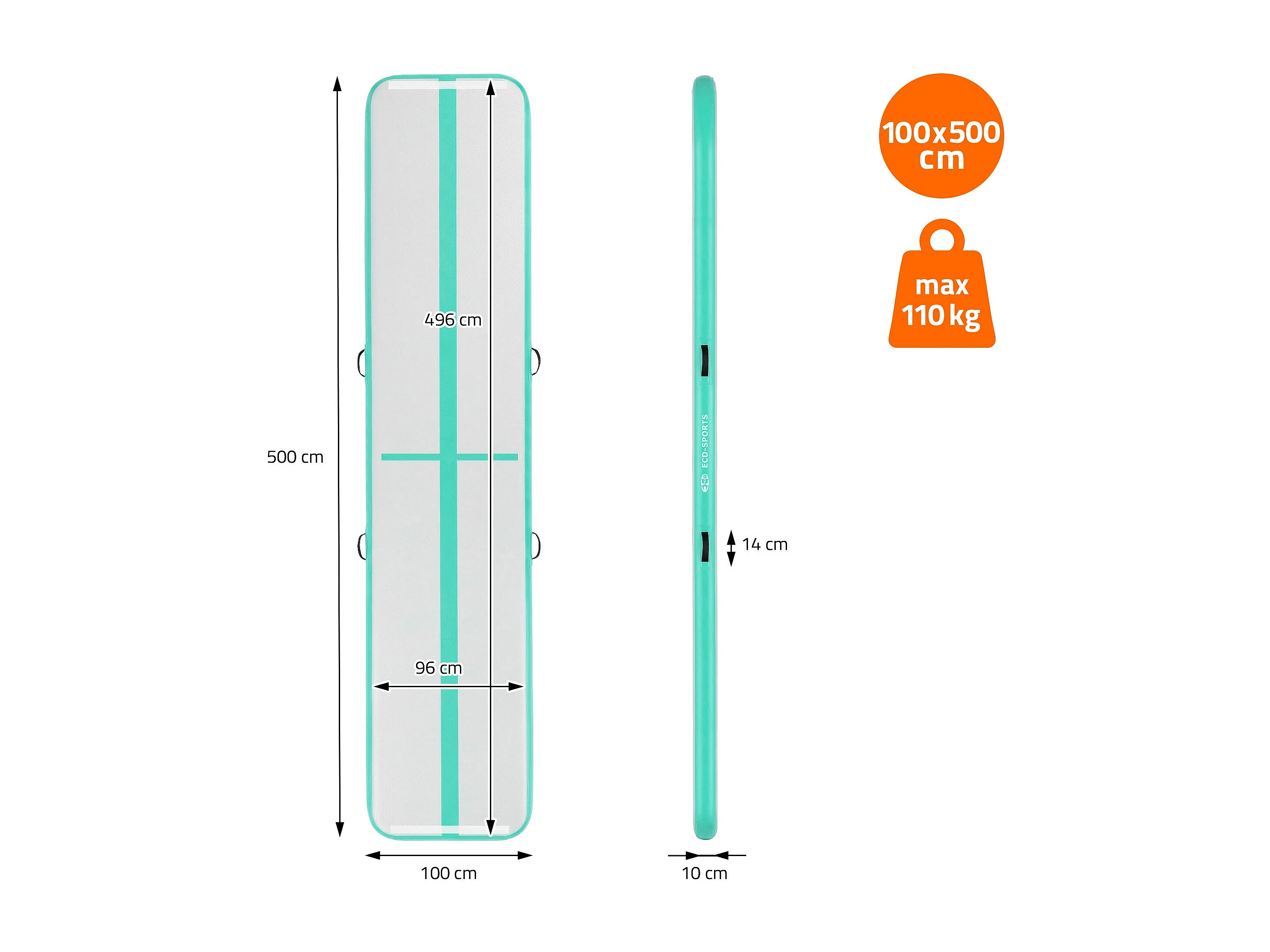 ECD Germany Tappetino ginnastica gonfiabile airtrack 5m verde menta 10 cm materassino tumbling fitness palestra con borsa trasporto e pompa elettrica