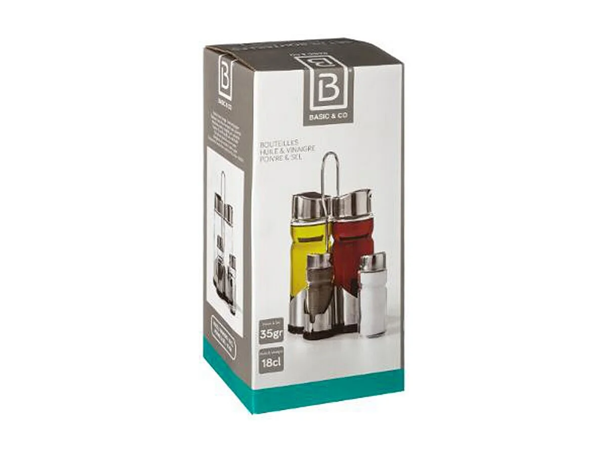 Set con Supporto "Olio Aceto & Sale Pepe" 20cm Argento