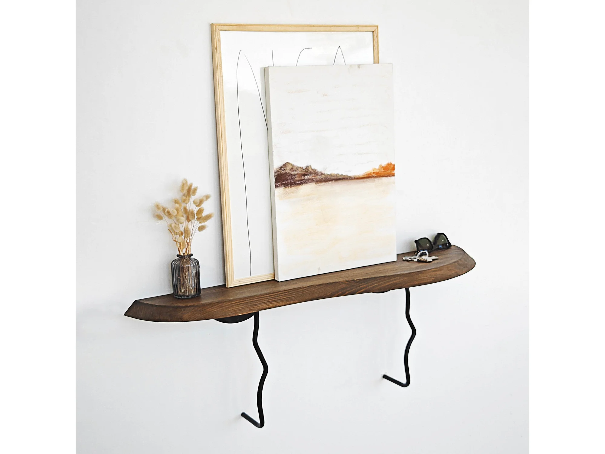 Elegante mensola da parete, 99 cm x 22 cm, nero e noce | 100% legno di pino e struttura in metallo | Perfetta per decorare e organizzare