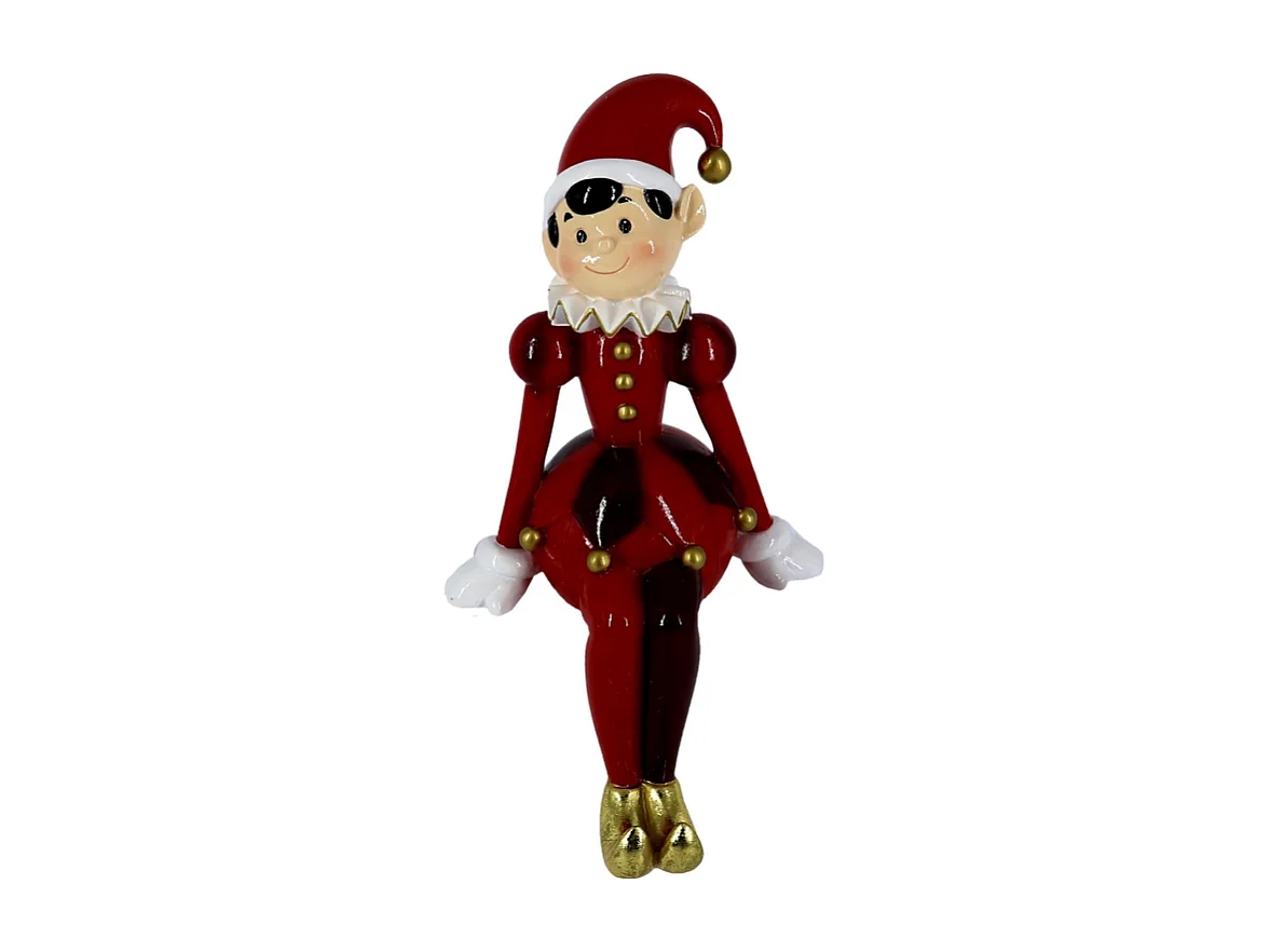 Elfo resina seduto giallo rosso cm 15,20x12,2h28,5