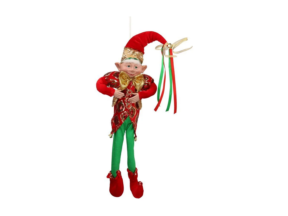 Elfo resina seduto rosso cm 12,4x13,7h21,5